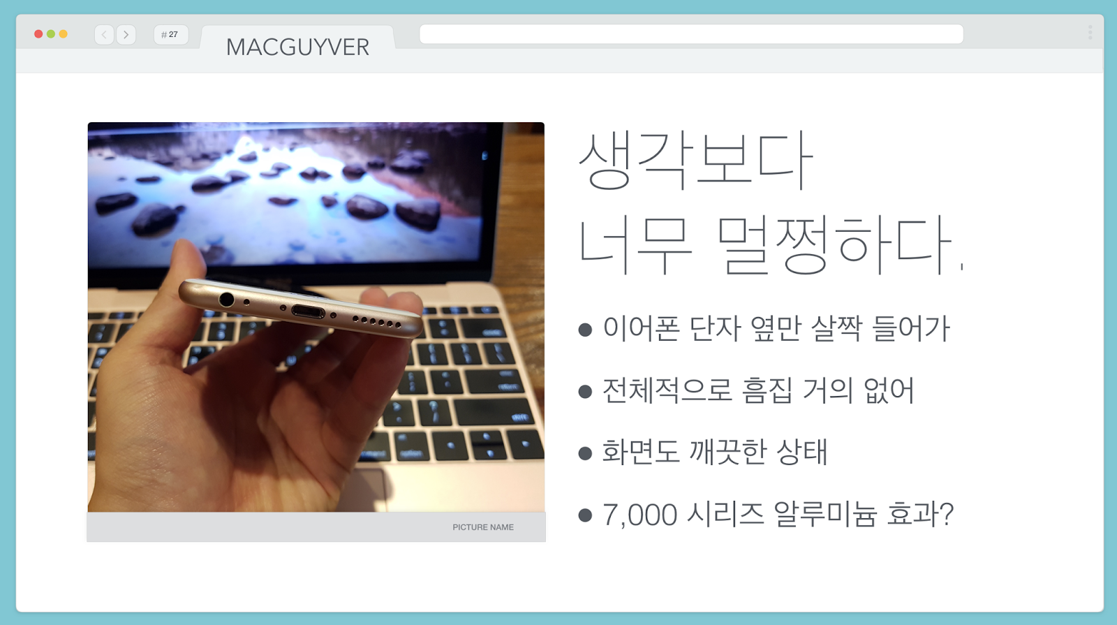 물론, 어떻게 주의를 하든 필자와 같이 실수로 인해 떨어뜨릴 수도 있는 것이 스마트폰인 만큼, 아이폰6s의 튼튼한 강도에 대해서 알아두는 것도 마음을 안심하게 해주는데 도움을 주는 것 같다. - MACGUYVER.