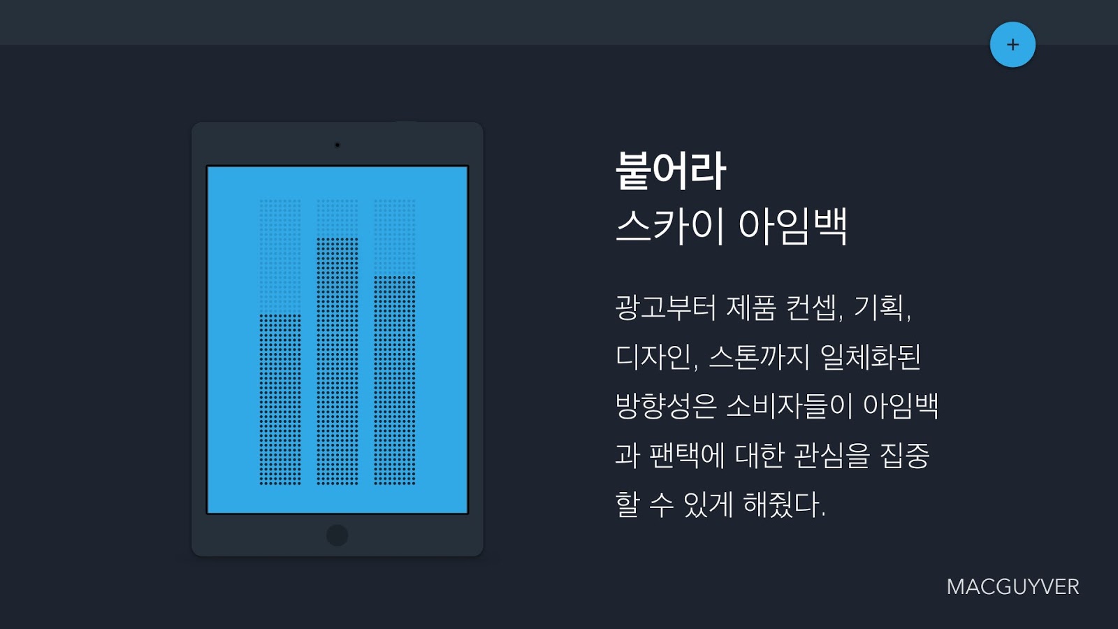 물론 아임백의 인기와 매진 행렬이 단순히 광고 덕분이라고 하기는 힘들겠지만, 이러한 광고부터 제품의 기획, 디자인, 컨셉 등이 모두 스카이다운 모습이라는 점에서 높은 점수를 줄 수 있을 것 같았다. - MACGUYVER.