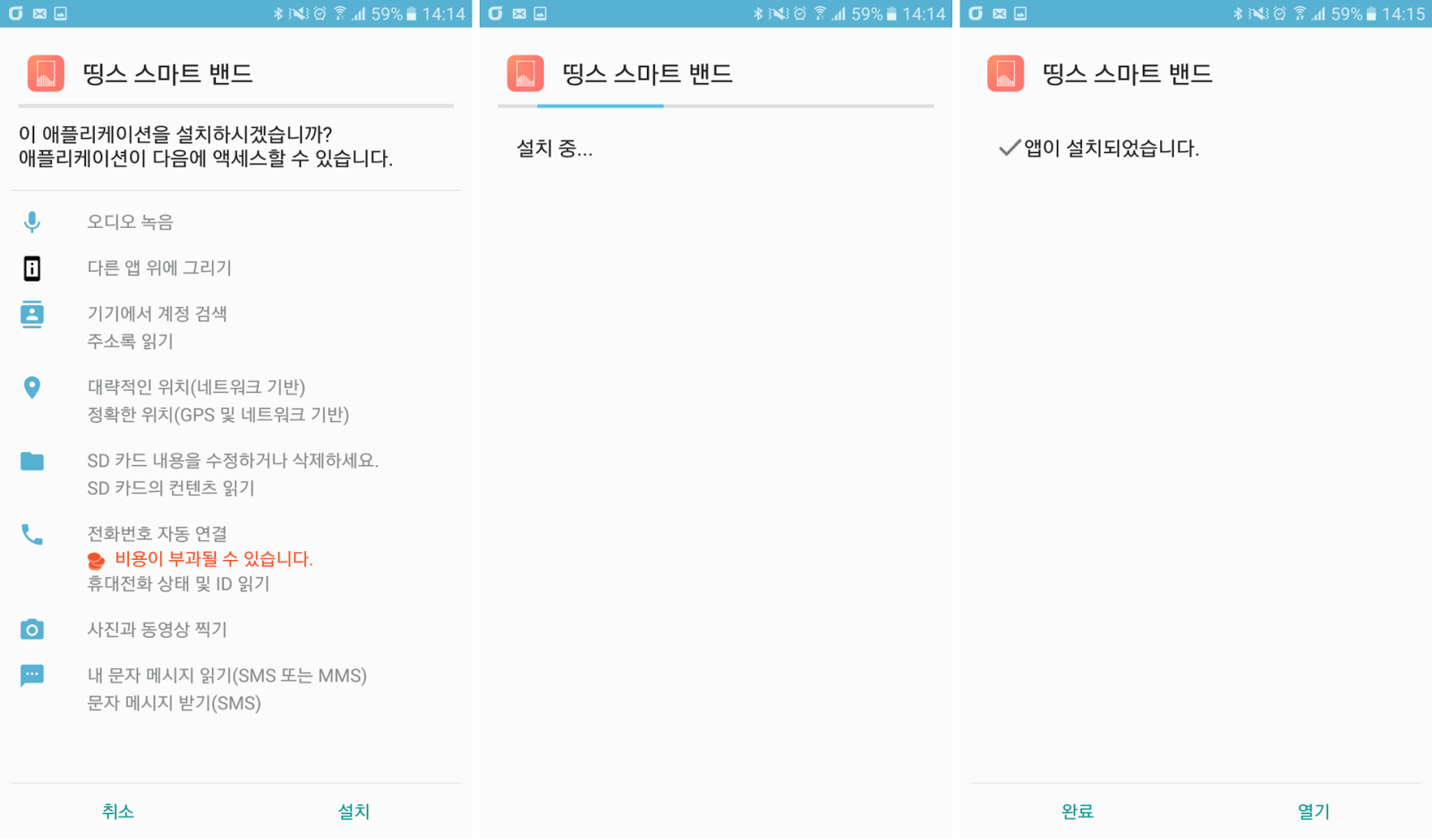 검색만으로도 설치가 가능한 전용 앱. 앞서 소개한 링크를 통해서 띵스 스마트밴드에 최적화된 안드로이드용 앱을 다운받아 설치할 수도 있다 ▼