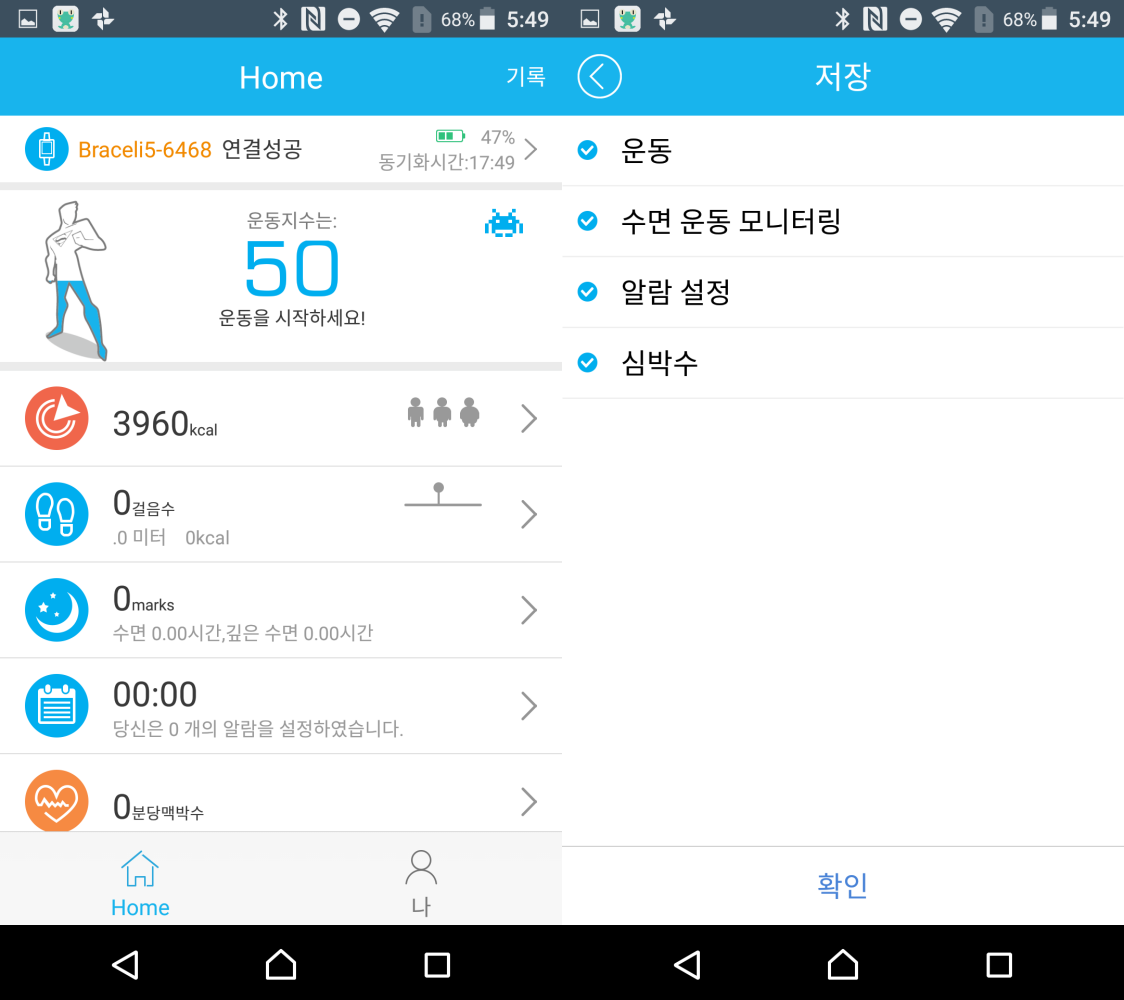 최소한의 정보 및 헬스 기록의 정확도를 높이기 위한 신체 정보 입력만 거치면 바로 로그인이 되어서 개인별 맞춤 기록을 할 수 있는 것이다. 연동부터 시작해 스마트밴드를 사용하기까지 아무런 설명서의 도움 없이도 가능하다는 점이 놀라울 정도였다.