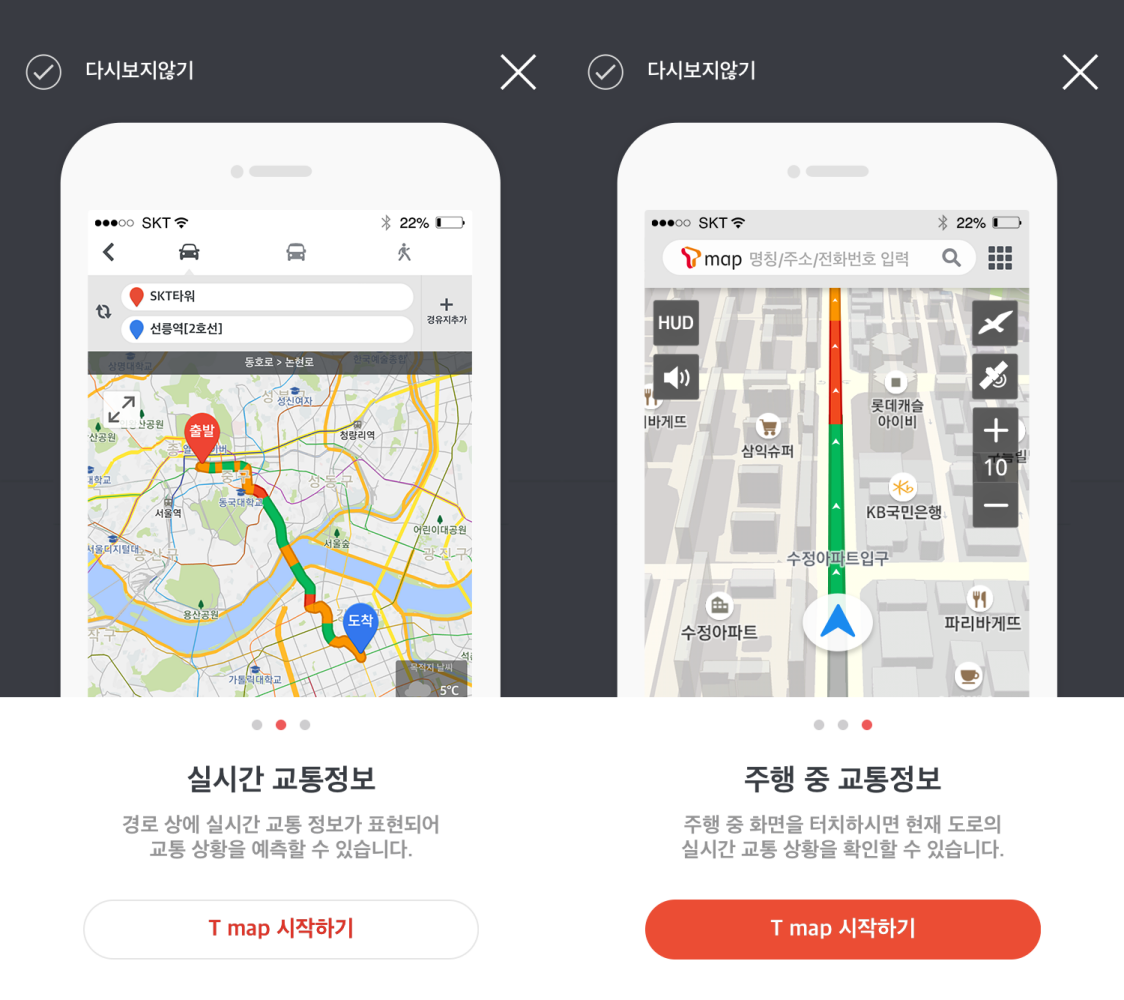 누구나 무료로 사용할 수 있는 T맵, 새로운 서비스에 맞춰서 환영한다는 문구를 추가했다 ▼