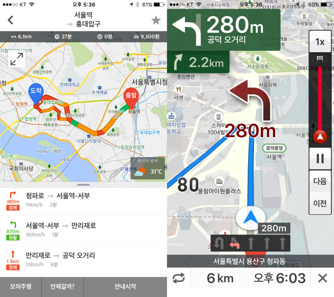 최근에는 자동차 플랫폼에도 도전하며 커넥티드 카에도 채택이 되면서 K5와 T맵이 함께 이슈가 되기도 했다. 그러나 복잡한 UI, GPS 수신불량을 비롯해 경로 안내가 마음에 들지 않는다는 리뷰도 많은 만큼, ‘T맵이 진리’라고까지 말하기는 힘들어 보인다.