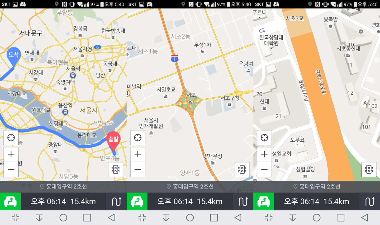 네이버 지도를 통한 내비게이션은 심플하면서도 플랫한 디자인이 눈에 띄었다 ▼