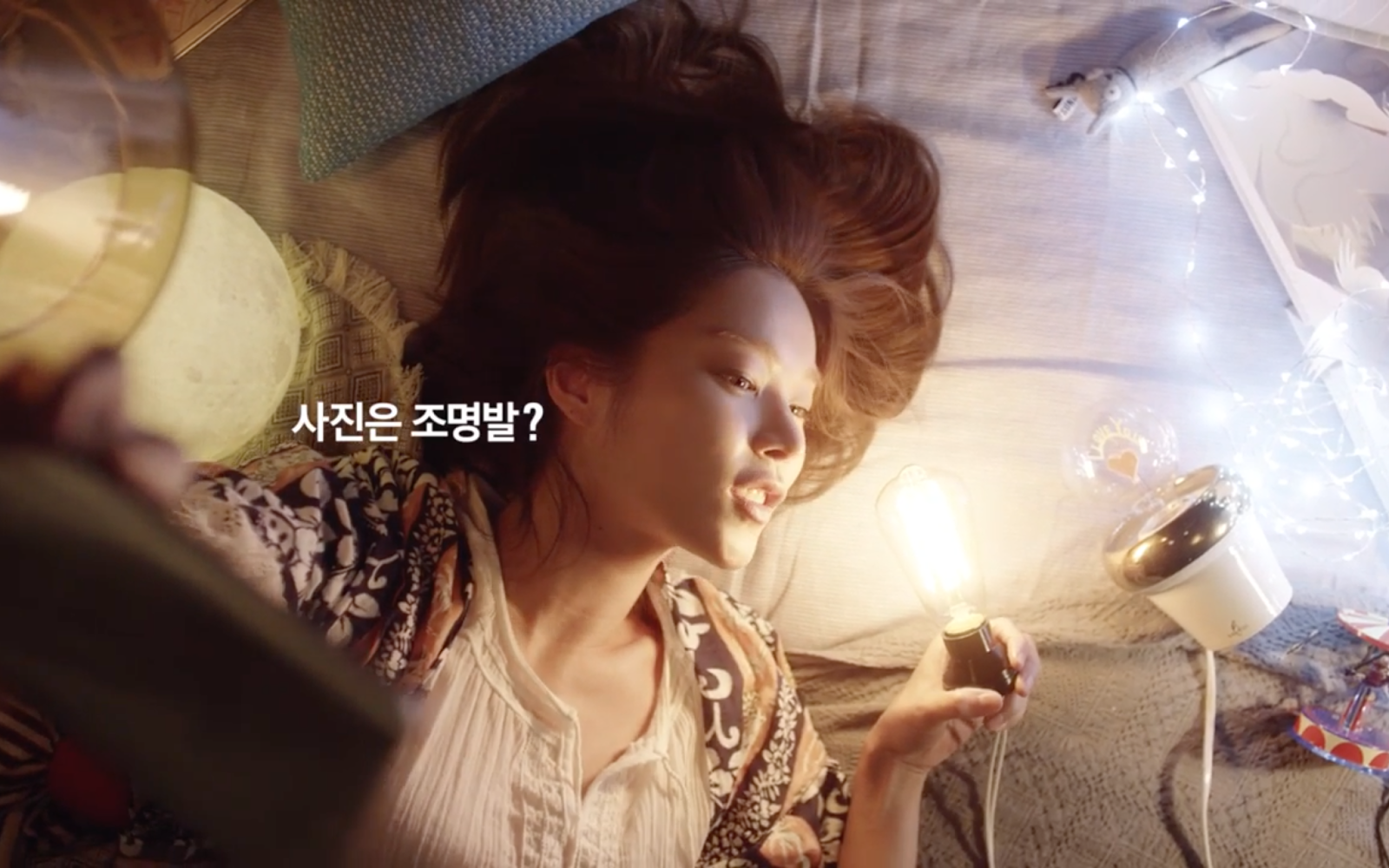 하지만 삼성은 이러한 상식에 의문을 제기했다. ‘사진은 조명발?’이라는 단순한 문구로 사진을 찍을 때 조명에 의지할 필요가 없다는 점을 강조하고 있는데, 역시나 낮이 아닌 어두운 방 안에서 이러한 문구를 활용했다.
