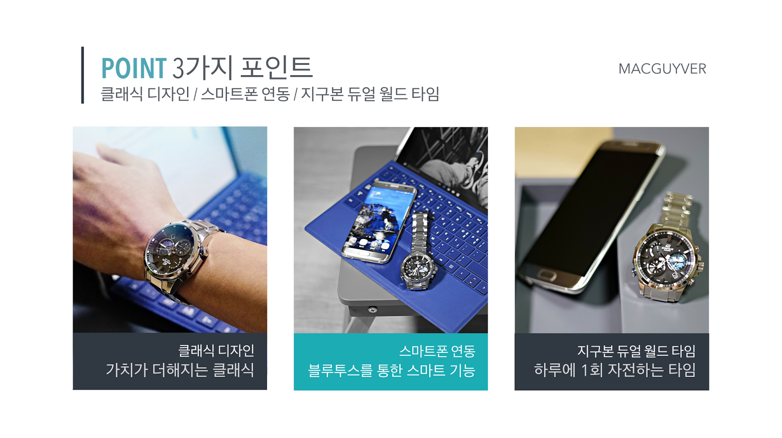 하지만 카시오 EDIFICE 600D의 정체성은 여전히 클래식에 있으며, 그 보조 수단으로서 스마트 기능이 더해진 것이라고 보는 것이 알맞다. 아이러니하게도 스마트워치 사용자의 90% 이상이 시간을 확인하는데 사용 시간의 대부분을 보낸다는 것을 고려하자면 오히려 좋은 선택일지도 모르겠다.