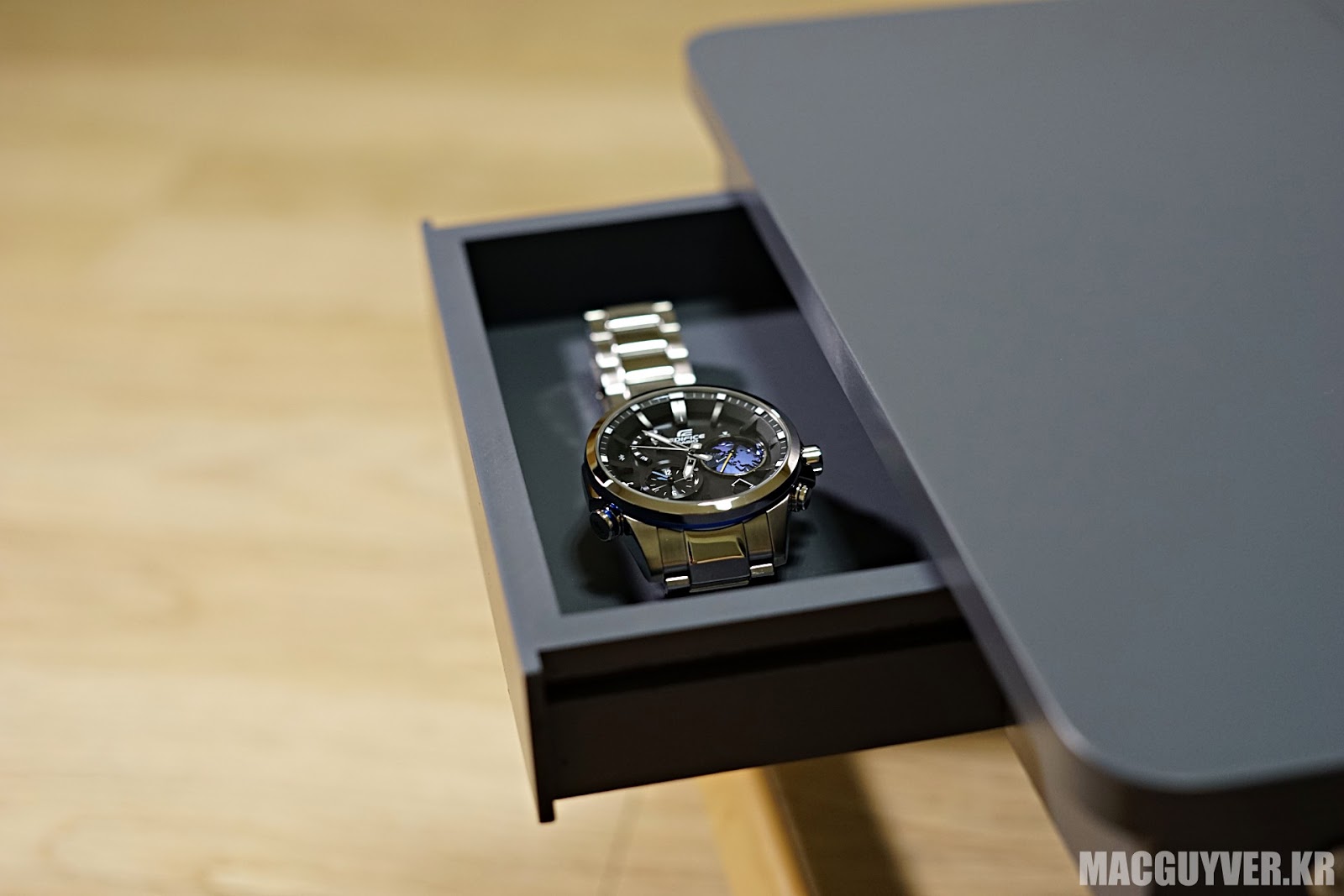 실제로 만져본 EDIFICE 모델은 우선 묵직한 느낌이 드는, 오랜만에 다시 느껴보는 클래식 시계의 감동이 그대로 전해졌다. 다양한 부가 기능을 가지고 있지만 여전히 가장 영향력이 큰 시계 페이스가 매우 세련되고 입체감이 뚜렷한 것이다.