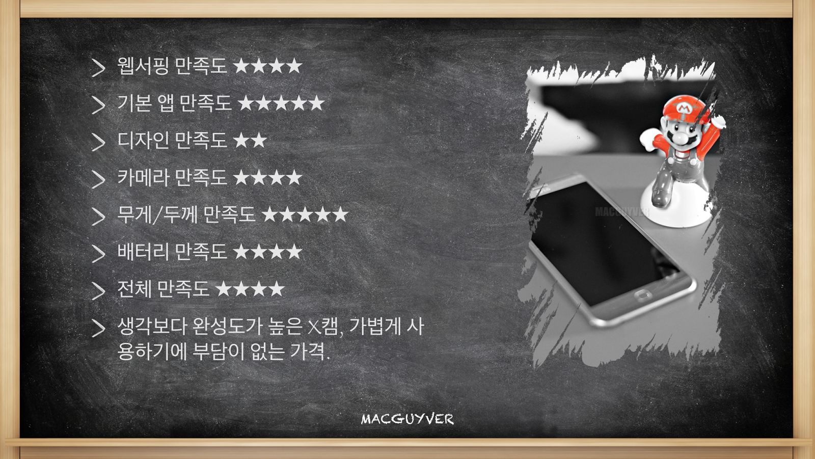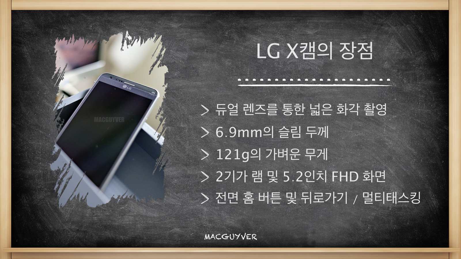 실제로 사용해본 X캠, 생각보다 군더더기 없이 기본기에 집중한 점이 마음에 들었고, 들어도 들고 있는 것 같지 않은 가벼운 무게와 얇은 두께, 더욱 얇게 처리된 측면 디자인이 만족도를 높여주는 폰이 아닐까 한다. - MACGUYVER.
