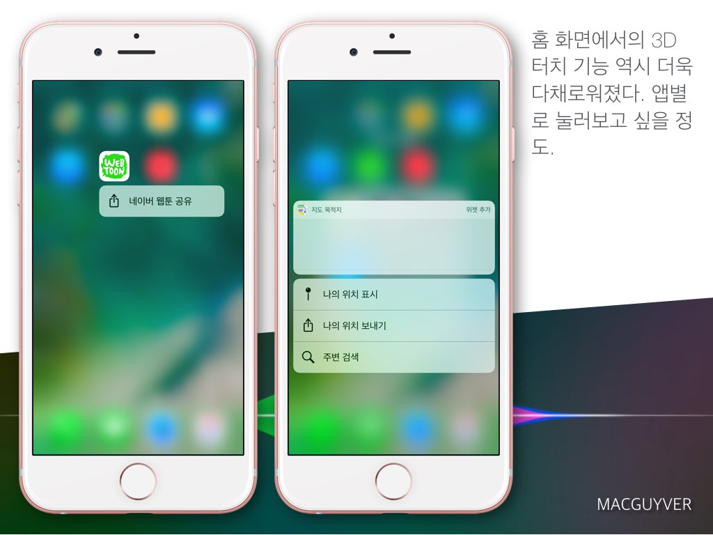 또한 가장 많이 지적을 받았던 문자메시지 튕김 현상도 어느 정도 해결이 되어서 기본적인 폰으로서의 기능에 문제가 없도록 개선이 되었고, 3D 터치 역시 기존과 달리 보다 많은 기능을 품게 되었다.