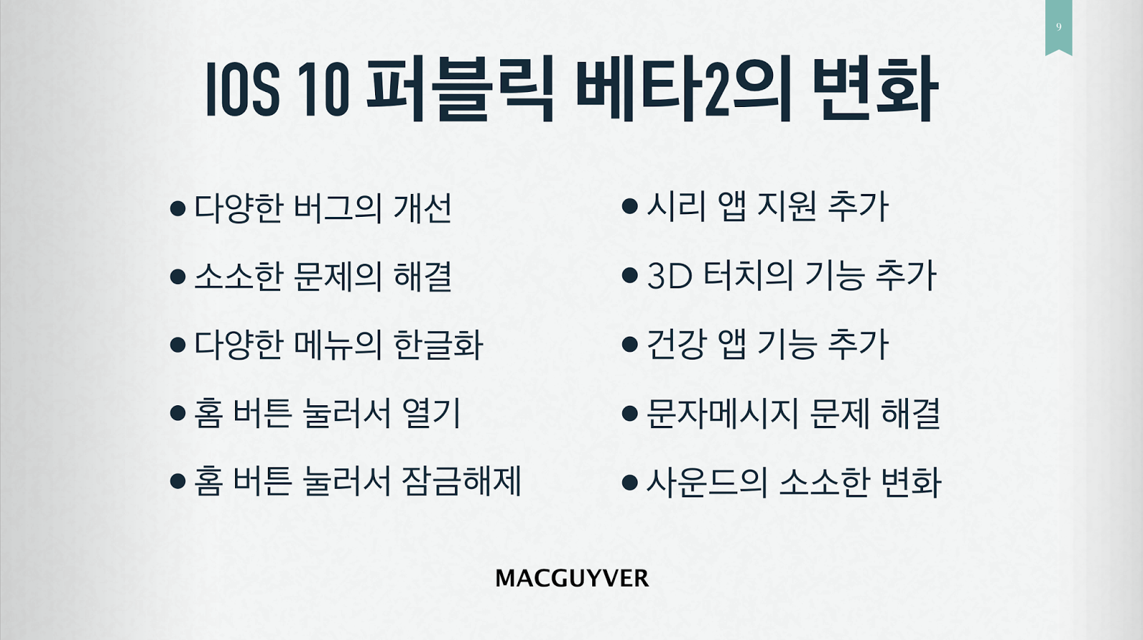 iOS 10 퍼블릭 베타2를 통해서 iOS 10을 미리 사용해보고 특히나 아이패드를 통한 화려하면서도 심플한 디자인 변화를 경험하면서 차세대 아이폰7이 어떠한 모습으로 등장할지를 기대하는 것도 좋을 것 같다. - MACGUYVER.