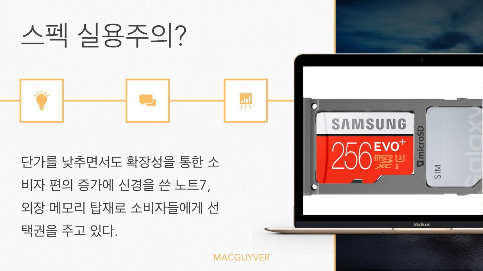 실제로 노트7이 공개된 이후 시선이 쏠린 방향은 자체적인 스펙이 어떻게 되는가 하는 점보다도 이것으로 무엇을 할 수 있는가에 쏠린 점을 보자면 삼성은 스펙이 아닌 다른 가치를 추구한 것으로 보인다.