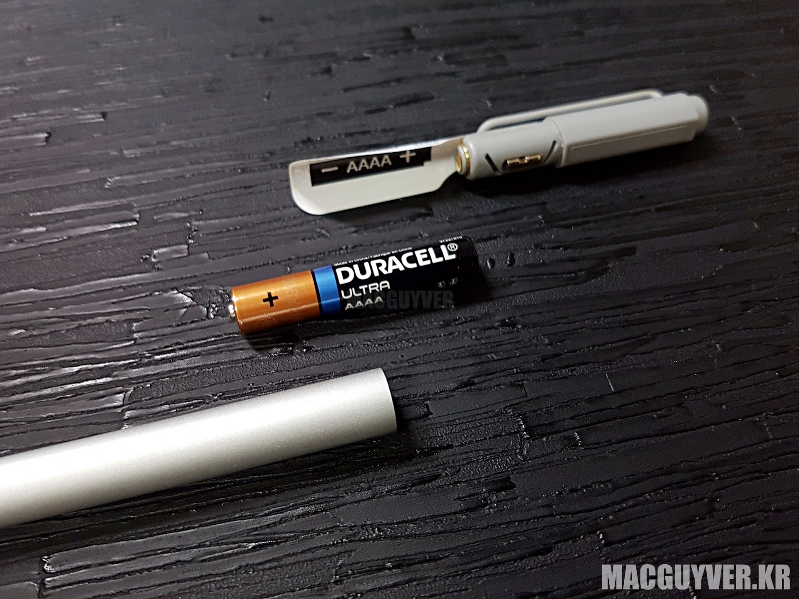 내부에는 건전지가 탑재되는데, 절전 기능이 포함되어서 가속도계를 활용한 저전력을 구현하기는 했지만 AAAA 규격의 배터리라는 점에서 일반적인 마트에서는 바로 구입하기 힘들기 때문에 미리 구비를 해두는 것이 좋다.