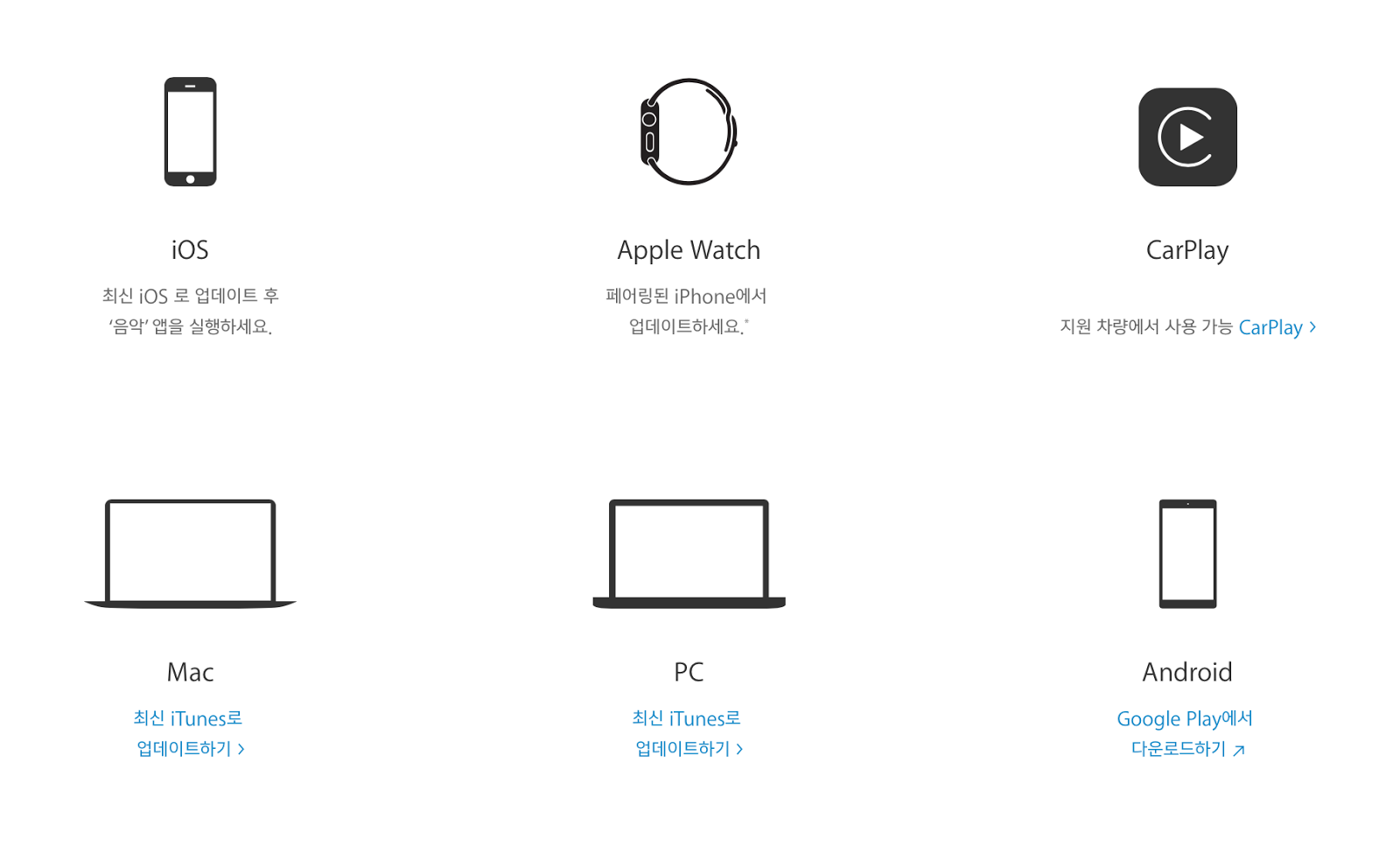 구형 모델을 지원하느냐고 묻는다면, iOS 기기 가운데 iOS 8.4 버전부터 지원을 하기 때문에 이 버전을 지원하지 않는 더 오래된 기기라면 재생이 되지 않는다고 답할 수 있다.