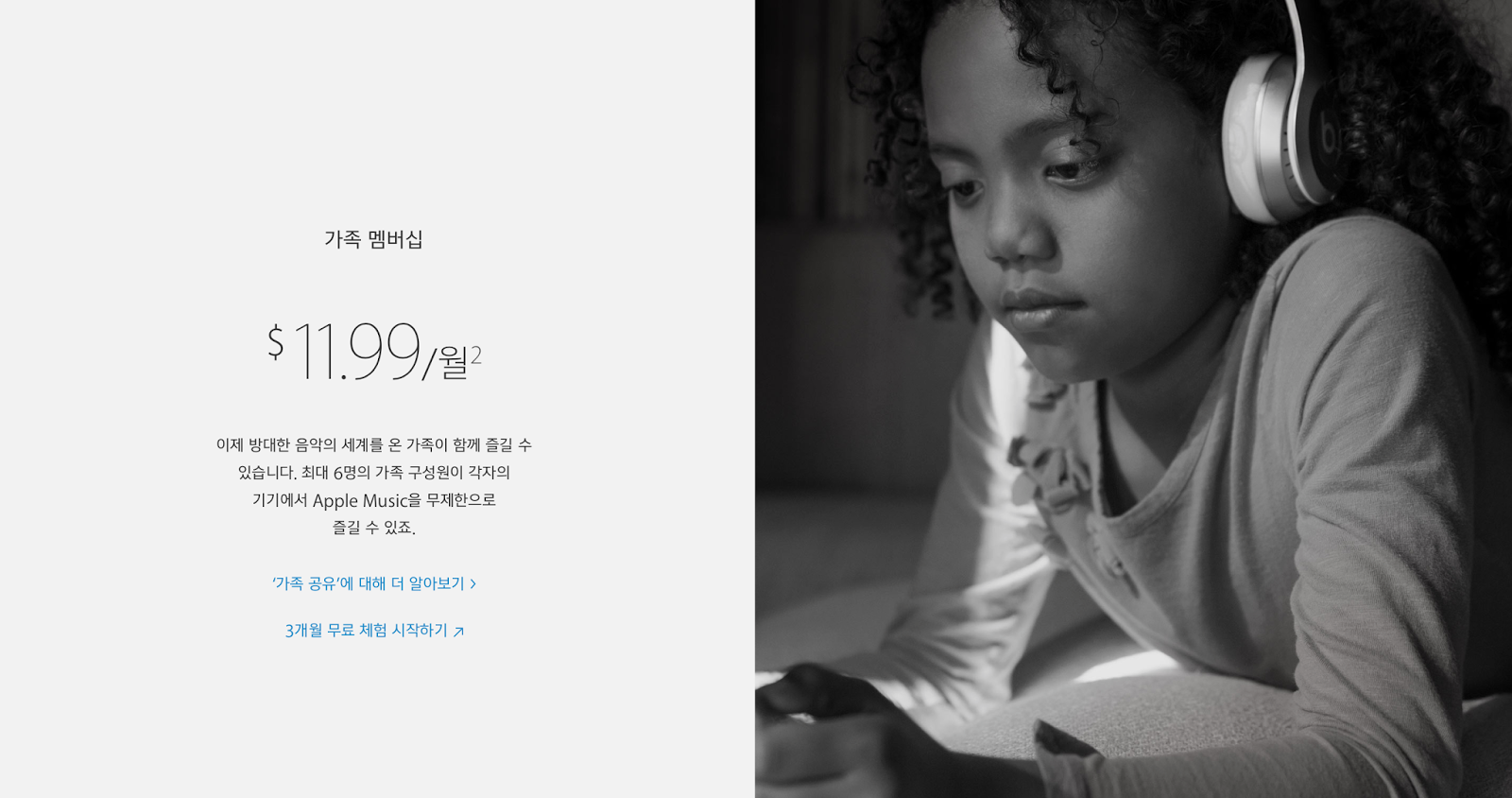 또한 패밀리, 가족 멤버십은 11.99달러로 해외의 14.99달러 대비 훨씬 저렴한 가격을 형성했다. 더구나 가족 멤버십은 최대 6명이 들을 수 있기 때문에 1인당 2달러 정도로 무제한 감상이 가능하다는 엄청난 매력이 있다.