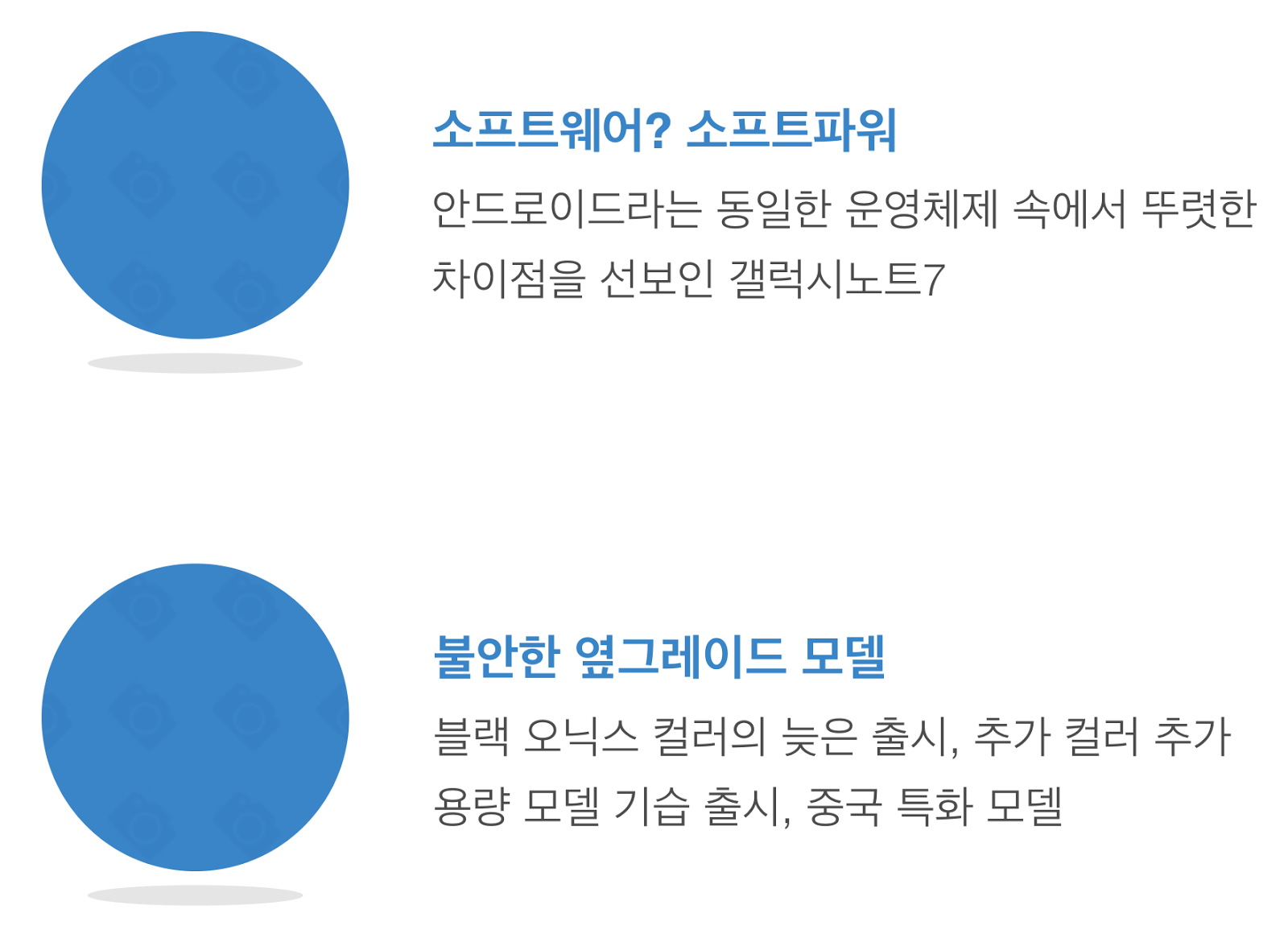 사용자가 굳이 신경을 쓰지 않더라도 세심하게 다듬어진 소프트웨어의 요소 하나하나가 경쟁력이 되었고, 단순한 스펙으로는 넘어설 수 없는 경쟁력으로 재탄생하게 되었다. 그야말로 안드로이드 속에 삼성만의 섬을 만든 것이다.