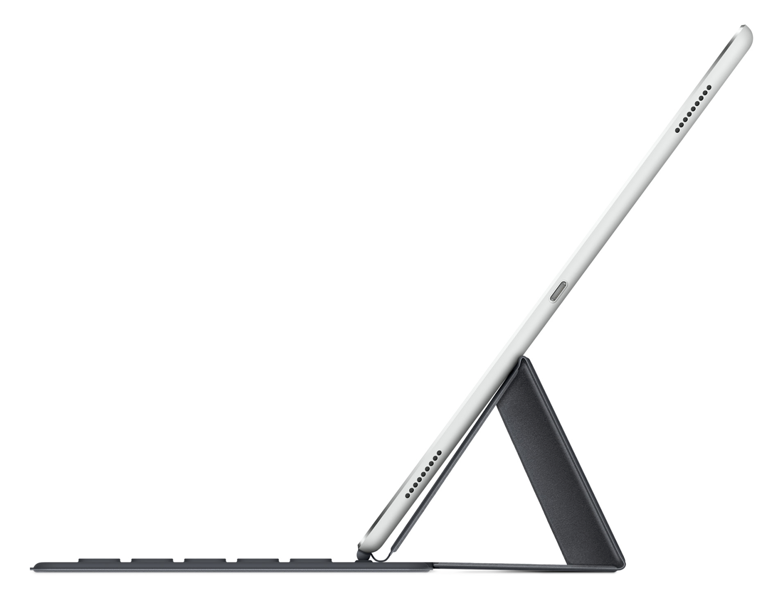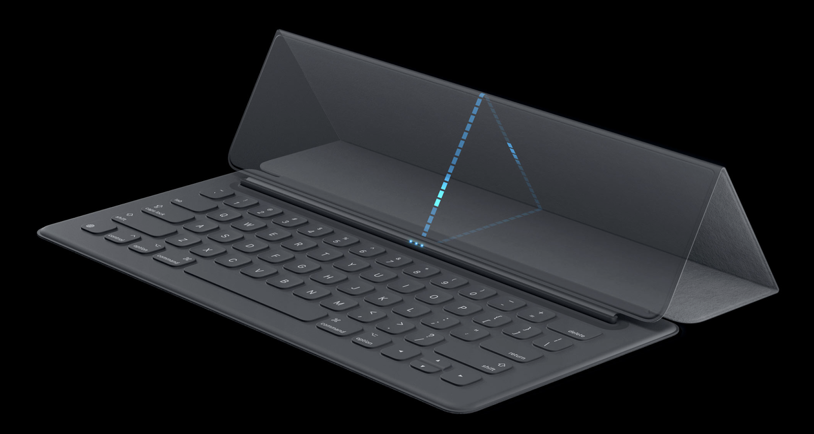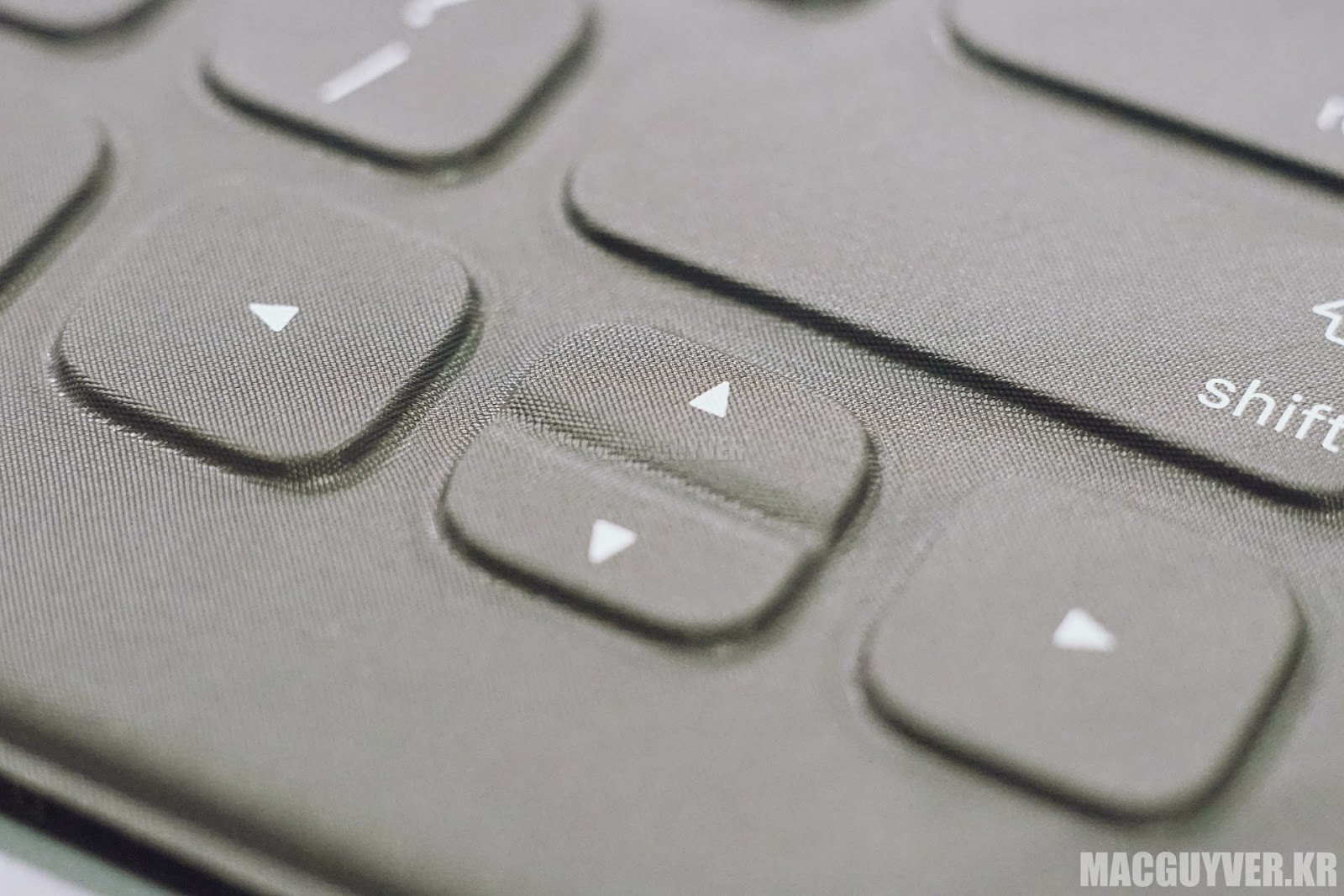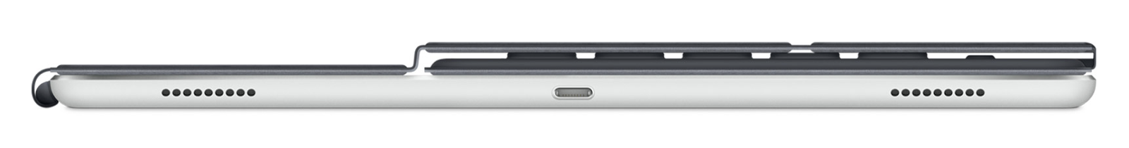 아이패드 프로 전용으로 만들어져 있는 스마트 키보드는 자체 배터리가 없는데, 이를 통해 무게를 크게 줄일 수 있었고, 충전으로부터의 자유를 얻게 된 것이다. 또한 틈새가 없는 디자인으로 외부 오염으로부터 안전한 디자인을 갖추고 있다.