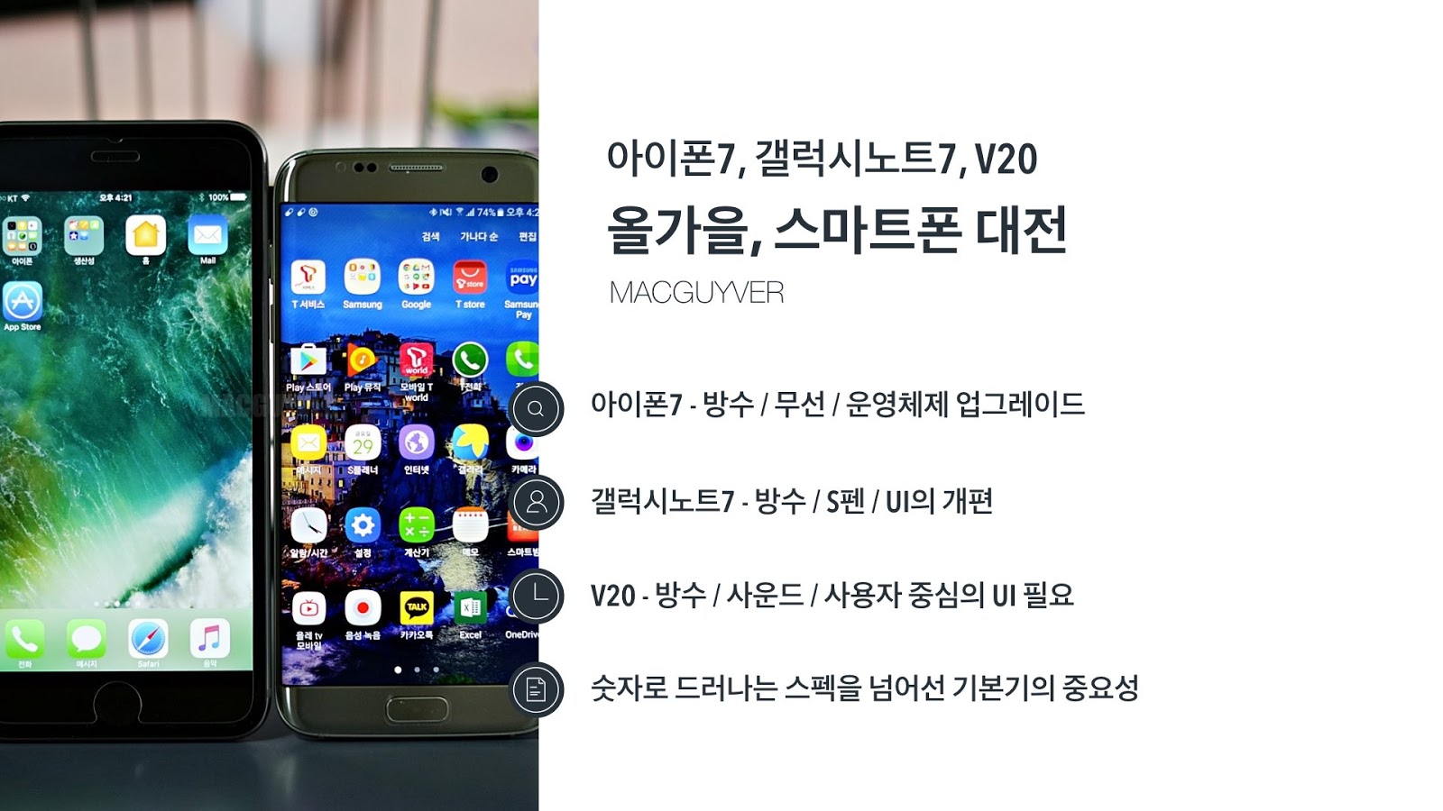 올가을, 국내 스마트폰 시장에서는 갤럭시노트7의 선방을 시작으로, 9월에는 V20의 출시가 예고되어 있고, 10월 말에는 아이폰7의 출시가 기다리고 있다. 각각 1개월 정도의 차이를 두고 시장에 등장하는 것이다.