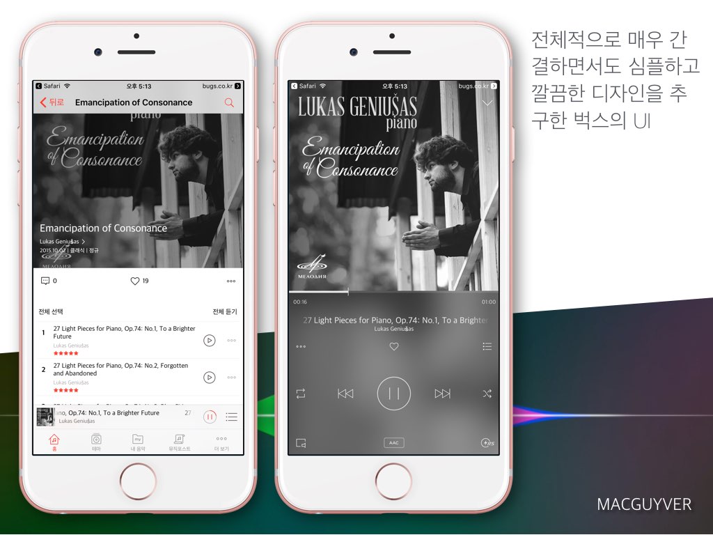 국내 음원 역시 비교가 안될 정도로 모두 갖추고 있기 때문에 애플뮤직을 비롯해 다른 음원과 비교해서 국내 음원에서도 부족함이 없고, 오히려 해외 음원까지 독점으로 제공하면서 벅스의 장점이 더욱 커지고 있다.