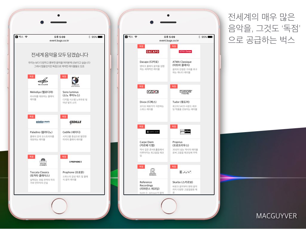 더구나 벅스는 고음질에도 공을 들인 결과 고음질 FLAC 음원도 무려 2,395,999곡이나 확보하며 국내 음원 서비스 가운데 가장 많은 고음질 음원을 서비스하고 있는 상황이다.