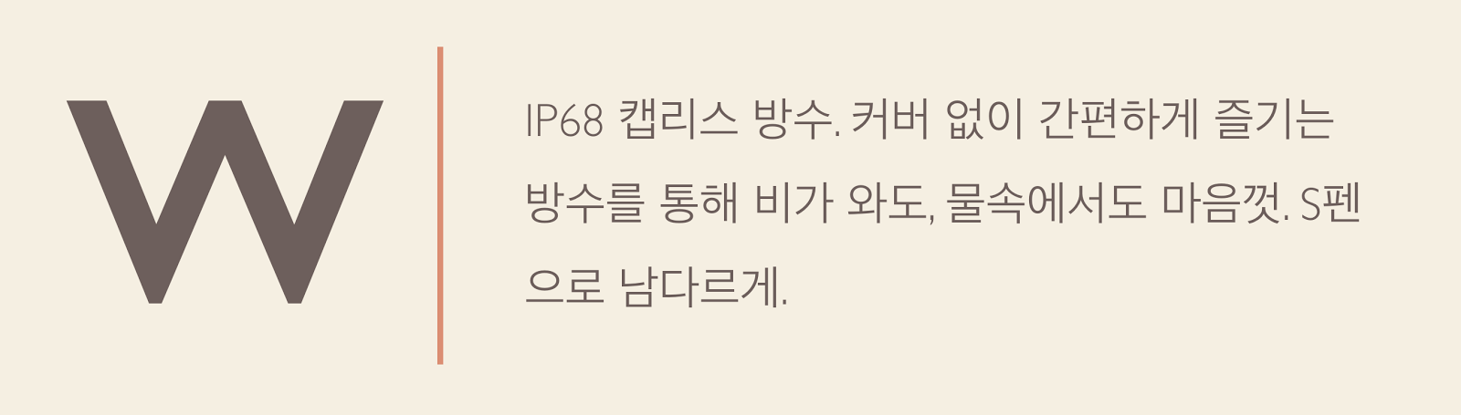노트 시리즈가 방수를 입으면서 자연스레 삼성의 최고 플래그십 모델은 모두 방수 스마트폰이 되었는데, 그것도 캡리스 방식을 통해 차별화된 경험과 편의성을 주는 IP68 최고 등급의 방수라는 점에서 기대감이 상당히 높았다.