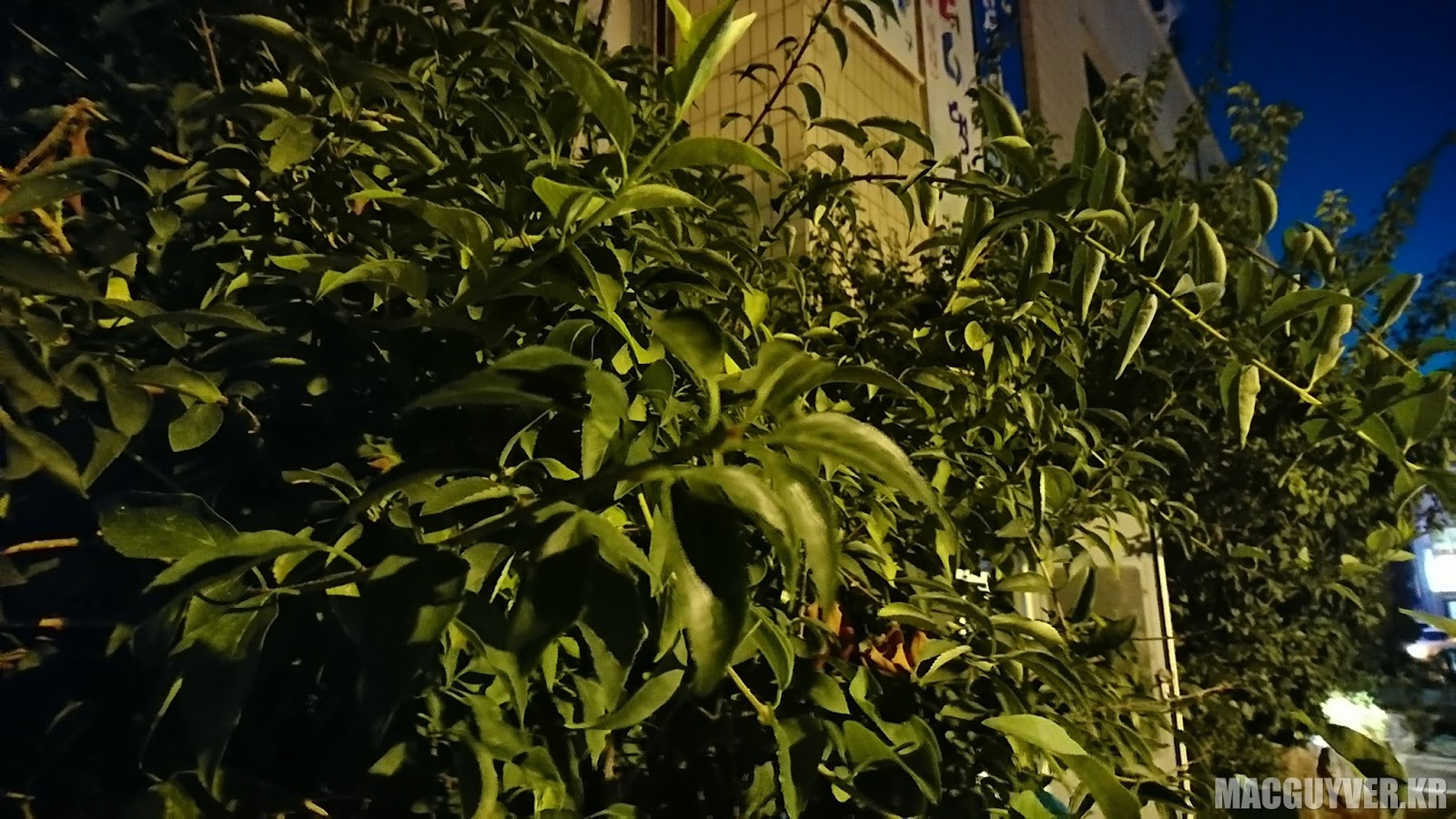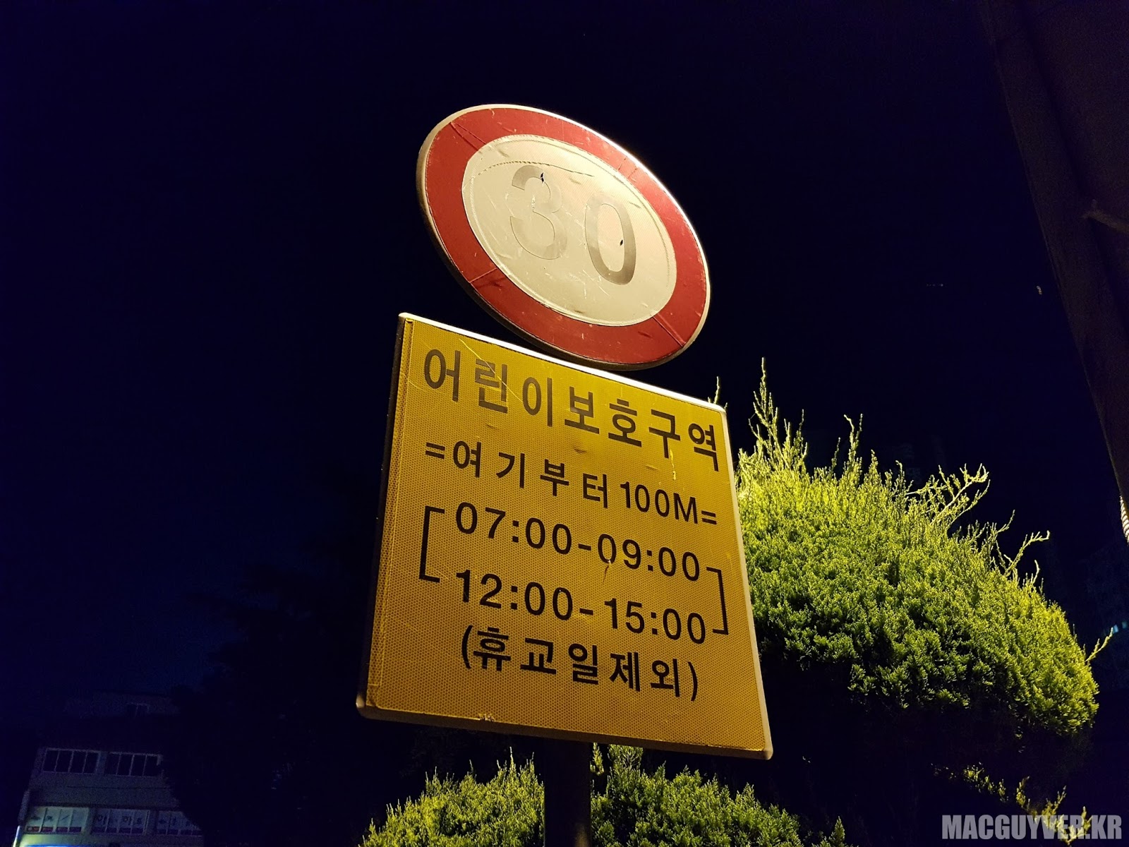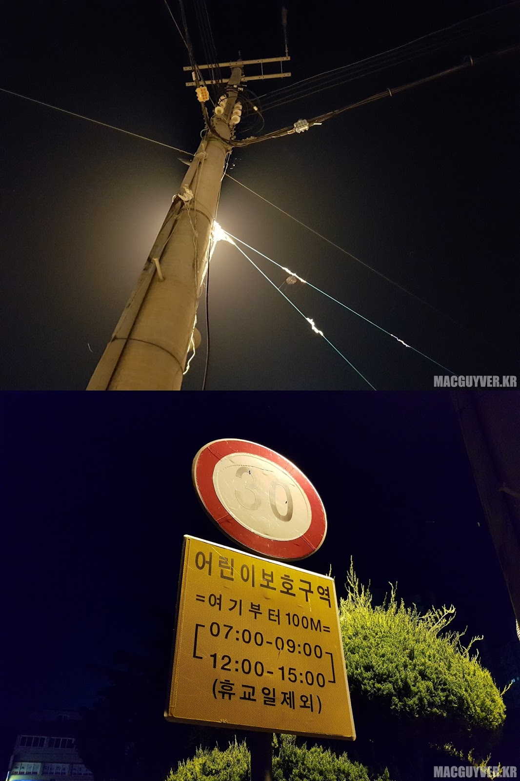 촬영 조건은 극도의 저조도로서 주변에서는 겨우 가로등 몇 개만 있을 정도였고 눈으로도 제대로 분간이 되지 않는 표지판이나 나무를 촬영하는, 어떻게 보자면 스마트폰 카메라에게 있어서는 가장 혹독한 조건에서 촬영이 이루어졌다.