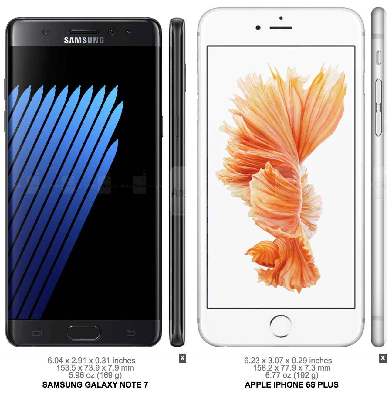 ✎ 화면은 갤럭시노트7이 더 크지만, 5.5인치의 아이폰6s 플러스가 더욱 큰 사이즈를 지니면서 휴대성에서 더욱 높은 점수를 얻었다.