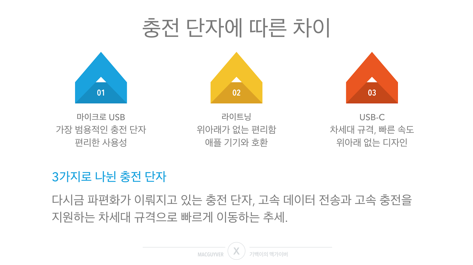 위아래가 없는 새로운 규격의 빠르고 안전하며 편리한 USB-C 커넥터, 대중화를 위해서는 적어도 3년 정도의 시간이 걸릴 수 있는 만큼 과도기를 편리하게 보내기 위한 자신만의 방법이 필요해 보이는 이유다. - MACGUYVER.