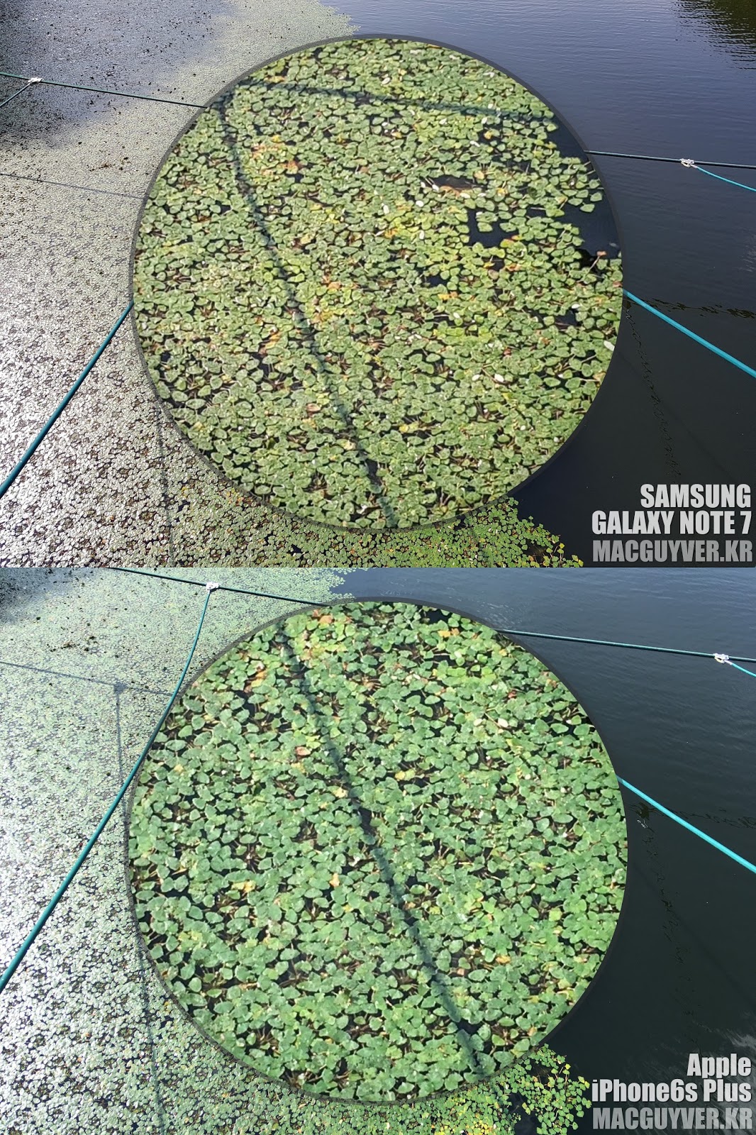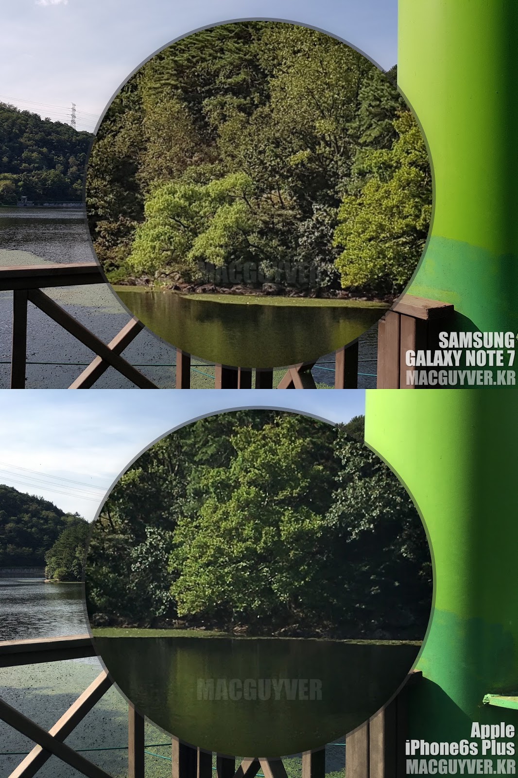 ✎ 이제, 100% 크롭 확대된 사진으로 비교해보자. 중앙 부분을 중심으로, 주변부 확대 사진도 포함되어 있다. 아래 사진은 갤럭시노트7으로 촬영되었다.