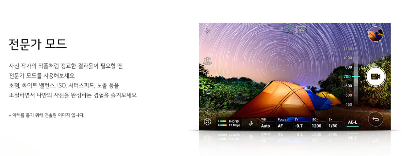 카메라 역시 전문가 모드를 더욱 다듬어서 사운드가 좌우에 들리는 소리에 따라서 파동을 이미지화해서 보여주고, DSLR에 준하는 다양한 설정으로 자신만의 사진을 담을 수 있도록 해주는 기술도 더욱 완성도를 높였다.