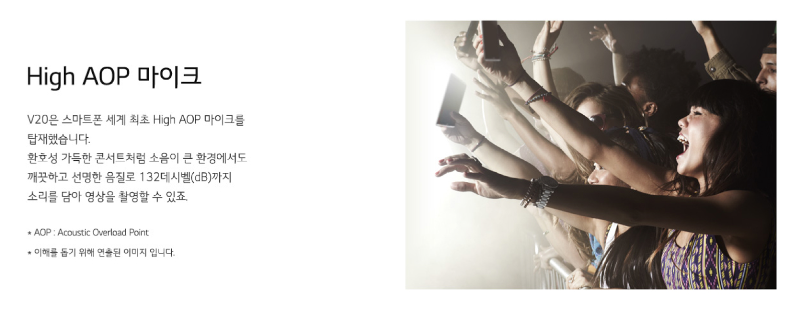 V20이 선보인 ‘그 이상’은 매우 세밀하고 섬세하다. 세계 최초로 High AOP 마이크를 탑재하며 무려 132 데시벨까지의 소리를 찢어짐 없이 그대로 담을 수 있기 때문.
