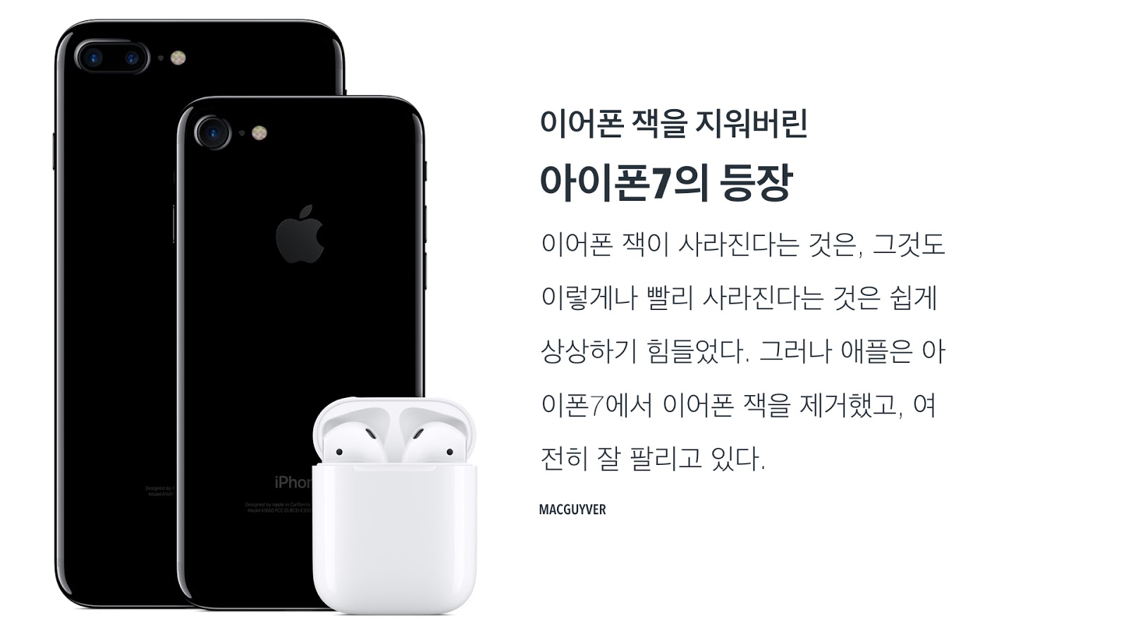 결국은 아이폰이기에, 애플이기에 가능했던 아이폰7의 높은 초기 판매량은 시장의 우려와 달리 아이폰 시리즈가 건재함을 알리게 될지 모르며, 이어폰 잭 제거는 당연한 어느새 일상이 되어 있을 것으로 보인다.