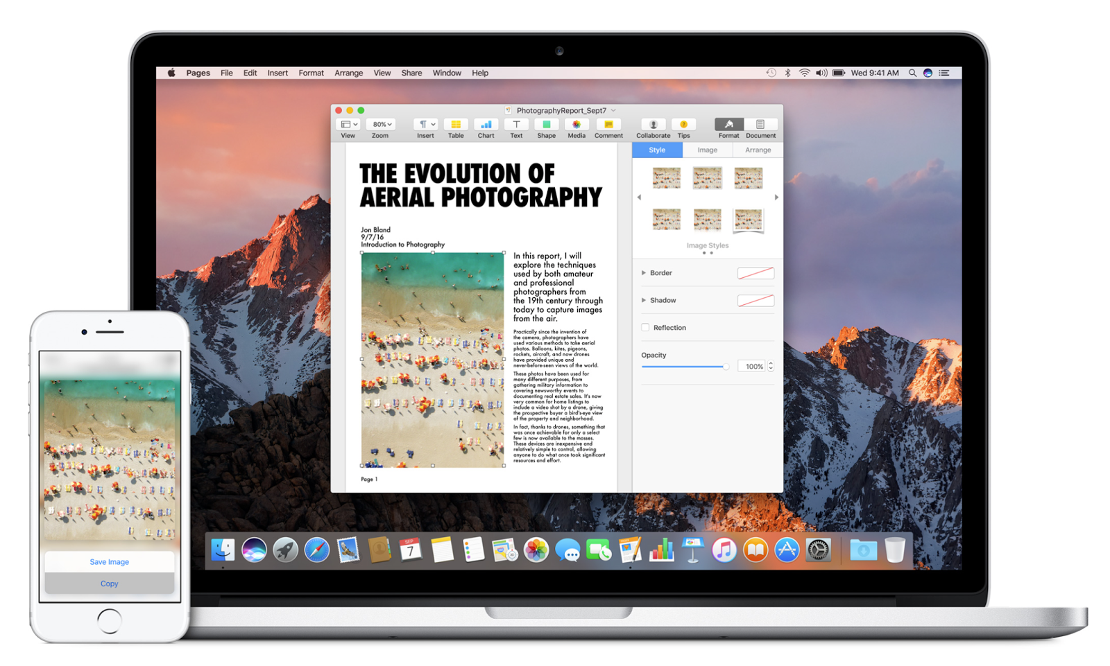 에어 플레이를 통해 다양한 연결성을 제공하며, 에어 드롭으로 파일 이동의 한계를 없앴고 아이클라우드 드라이브를 통해 맥에서 작업하던 작업 파일을 어떠한 iOS 기기로도 볼 수 있고 편집할 수 있는 편의성이 조금 더 다듬어진 것이다.