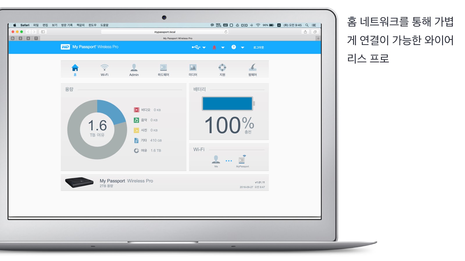 기가 와이파이를 활용해서 훨씬 빠른 속도로 데이터에 접근하고 마치 하나의 데이터 스토리지를 여러 대의 기기에서 사용하듯 기기의 한계가 없는 연결성을 가지고 있기 때문에 훨씬 더 빨라진 802.11ac 무선 기술을 200% 활용할 수 있다.