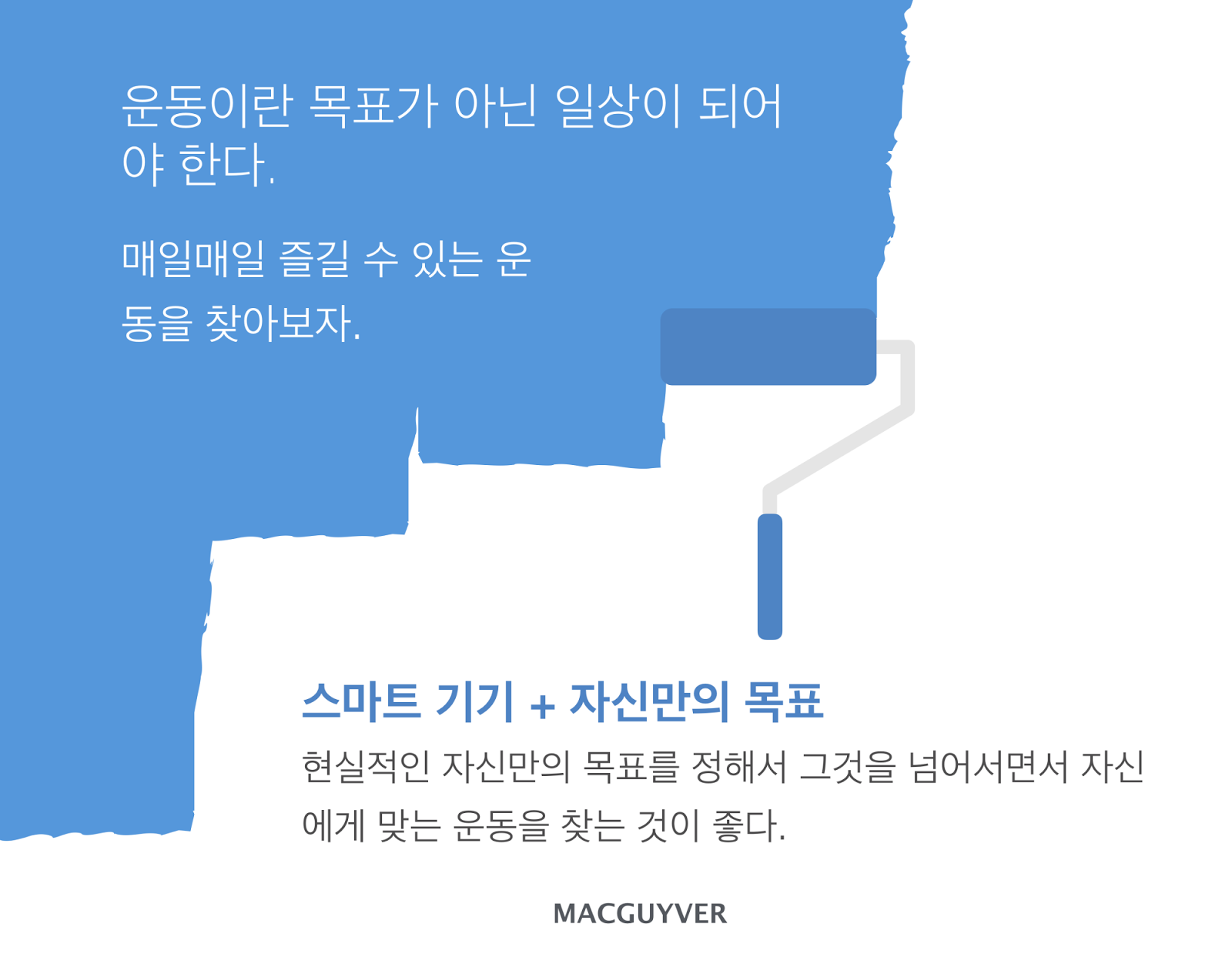 운동 역시 그렇다. 누군가는 운동 자체를 즐길 수 있고 체력도 있으며, 시간까지 있는 경우라면 하루의 목표를 달성하는 것은 그리 힘든 일이 아닐 것이다. 그러나 평소에 운동과는 거리가 있던 사람이 갑자기 하루 권장량만큼 달성하려면 그것은 부담이 되고 만다.