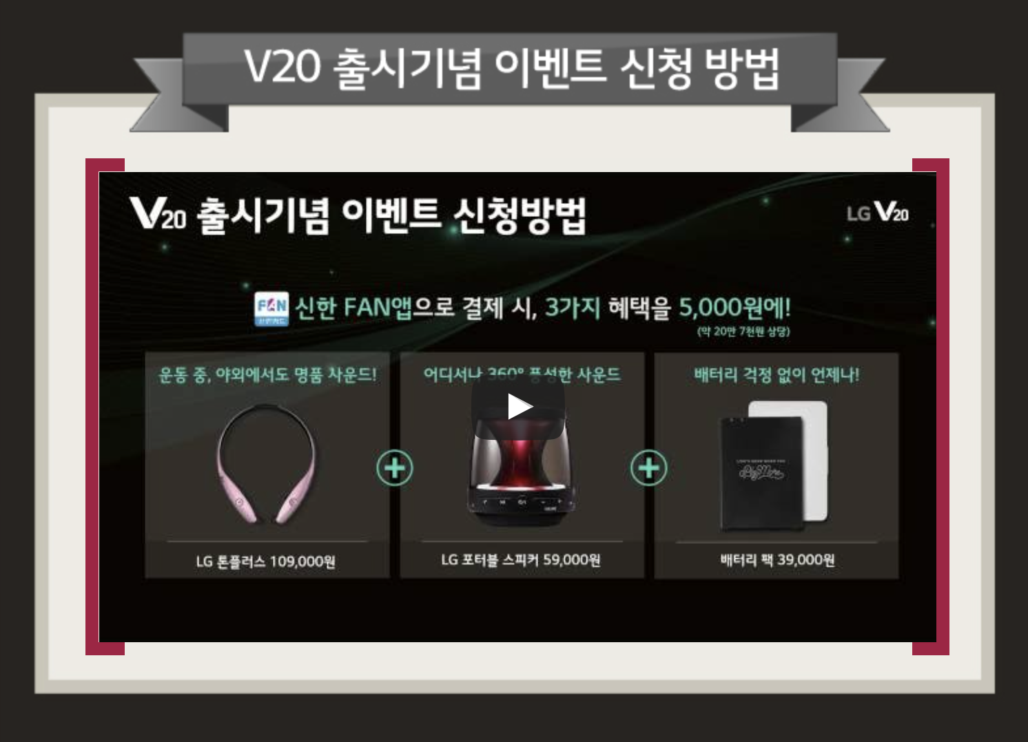 스마트폰 구입에 따르는 할부금 부담을 줄일 수 있는 이러한 제휴 혜택을 200% 활용한다면 V20의 구입 가격도 더욱 내려가게 되고, 앞의 추가 액세서리 혜택까지 받을 수 있기 때문에 V20의 매력이 더욱 돋보일 것으로 보이는 이유다.