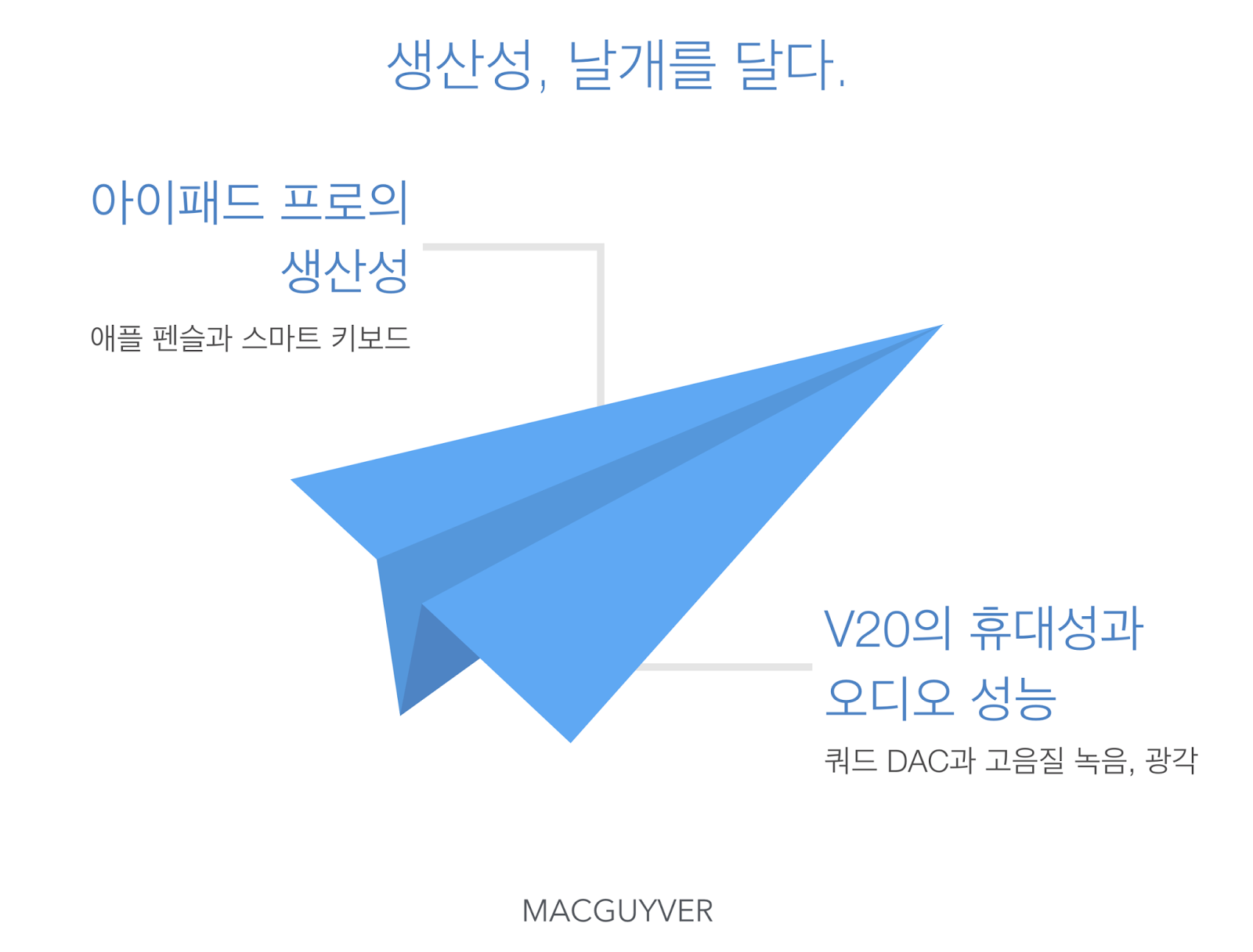 다양한 생산 작업에 더해, 컨텐츠를 즐기는 부면에 있어서도 부족함이 없었던 아이패드 프로와 V20 이종간의 조합은 서로가 가진 단점마저 지워나가면서 색다른 재미를 느낄 수 있게 해줬다. 아이패드 프로를 찾는다면, 또한 V20를 찾는다면 둘 다 알아보는 것을 추천하는 이유다. - MACGUYVER.