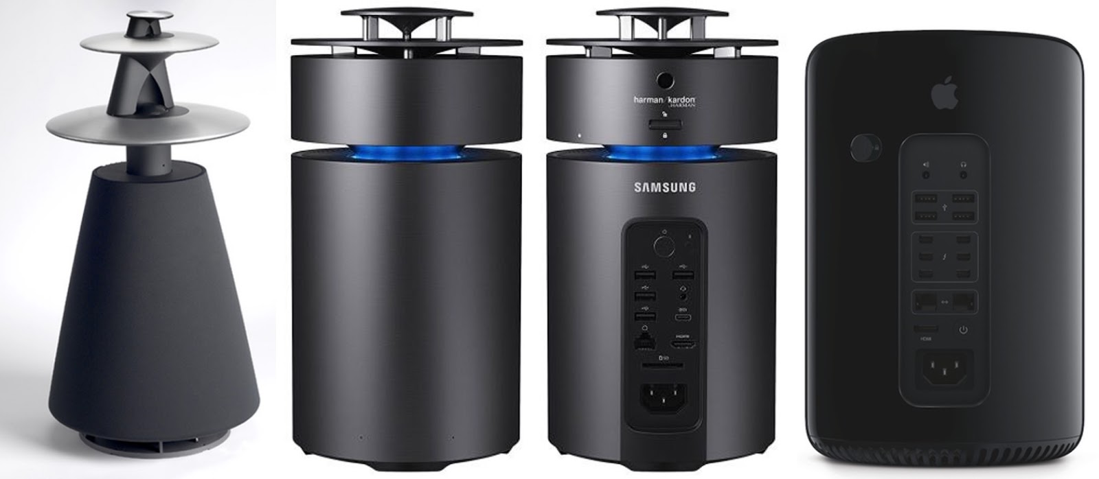 전체적인 재질감이 다르고, 디자인의 형태가 원통형이지만 자세히 보면 세모난 모양을 갖추고 있다. 그래서 굳이 맥 프로가 떠오르지도 않고, 무엇보다도 전면 하단부의 B&O 로고는 오히려 이 제품이 오디오에 특화가 되었음을 얌전히 드러내고 있기까지 했다.