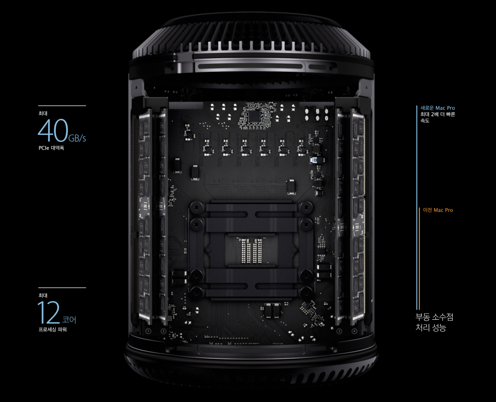 원형으로 만들 때의 장점을 고루 조합하며 최대한 공간을 절약하는 디자인으로 기존의 네모난 맥 프로와 경쟁하면서 등장한 새로운 맥 프로는 성능면에서도 놀라움을 줬고, 크리에이티브를 전업으로 하는 분들에게는 어떠한 로망같은 제품으로 탄생한 것이다.