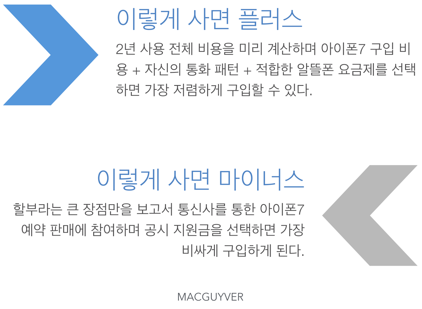 초기 구매자를 호갱으로 보는 통신사들의 이러한 횡포, 혹은 담합을 피하기 위해서는 소비자들이 더 똑똑해질 필요가 있다. 각종 이벤트와 감언이설에 속아서 2년간 지불해야 하는 막대한 통신 비용을 날리지 않도록 조금 더 알아보고 선택해볼 것을 추천하는 이유다. - MACGUYVER.
