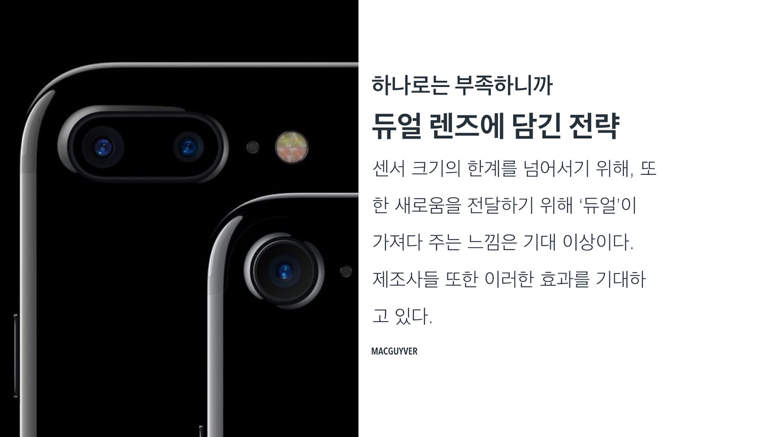 사실 소비자들보다도 더욱 새로운 기술을 갈망했던 제조사들로서는 듀얼 렌즈로 눈을 돌릴 수밖에 없었는데, 작은 센서라고 하더라도 이것이 2개가 된다면 할 수 있는 일들도 더욱 많아짐을 의미하기 때문이다.