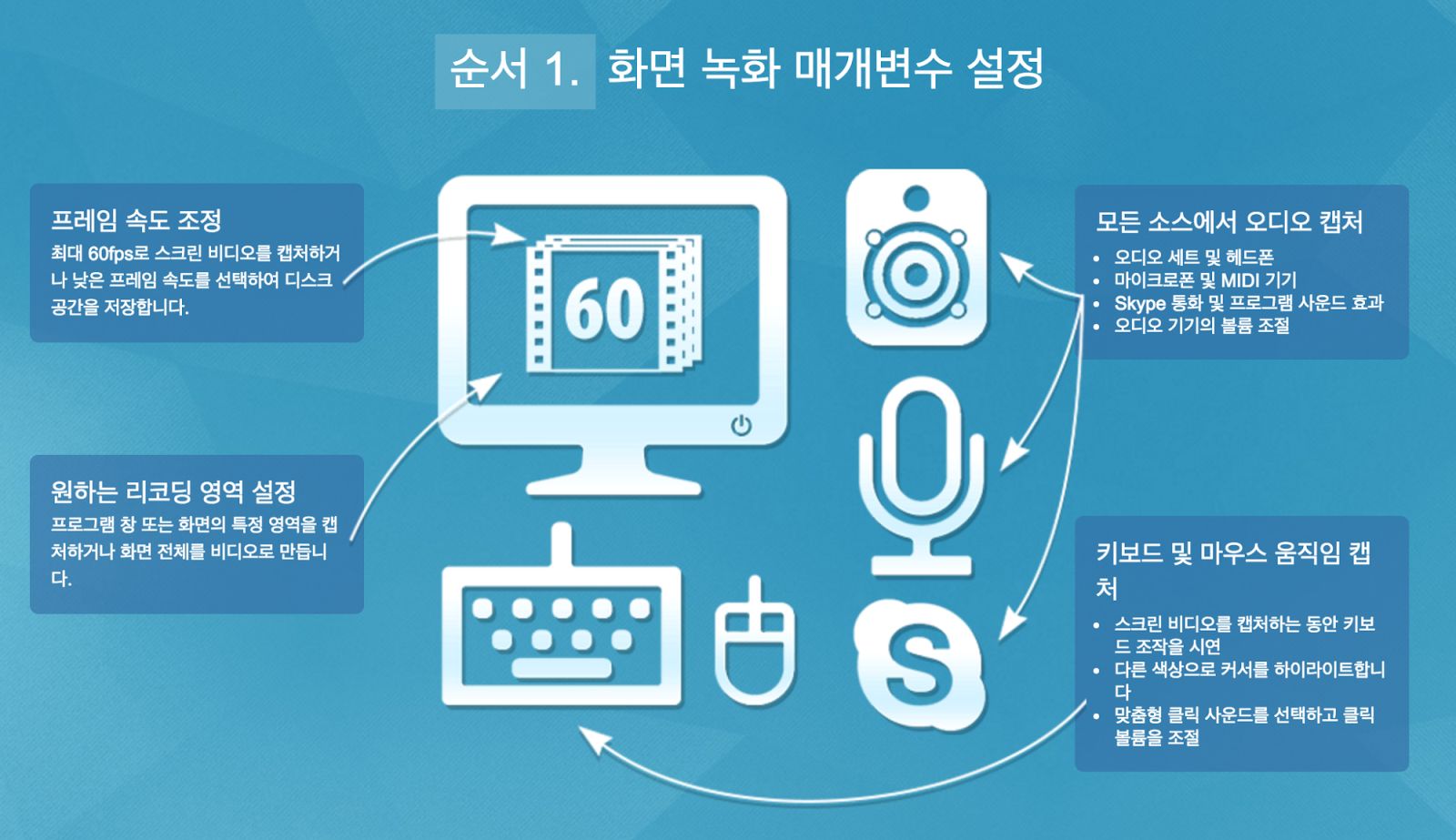 윈도우 및 맥 모두에서 활용이 가능한 이 프로그램은 현재의 화면을 선택한 영역만큼, 혹은 전체 화면으로 담을 수 있는데 설정이 매우 다양하다. 30 프레임이나 60 프레임 혹은 FHD 해상도 혹은 SD 해상도 등으로 다양하게 캡처하고 담을 수 있도록 도와주기 때문이다.