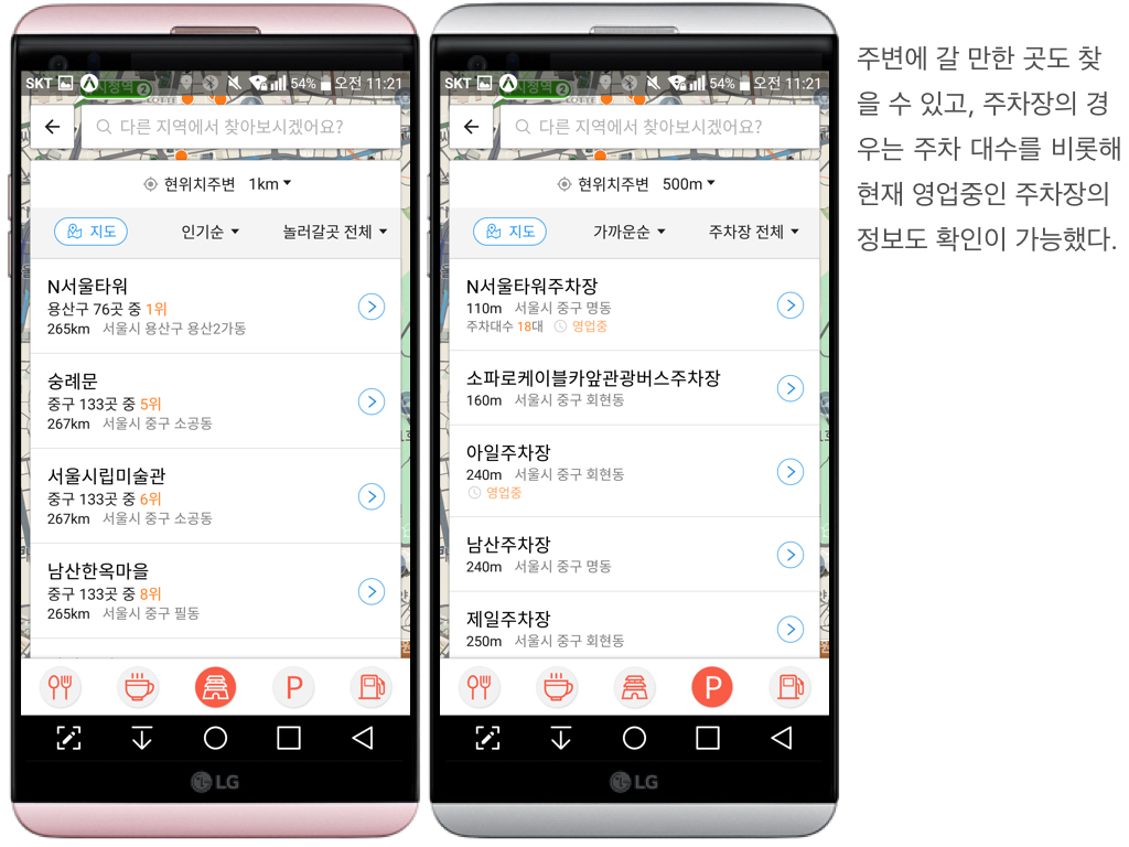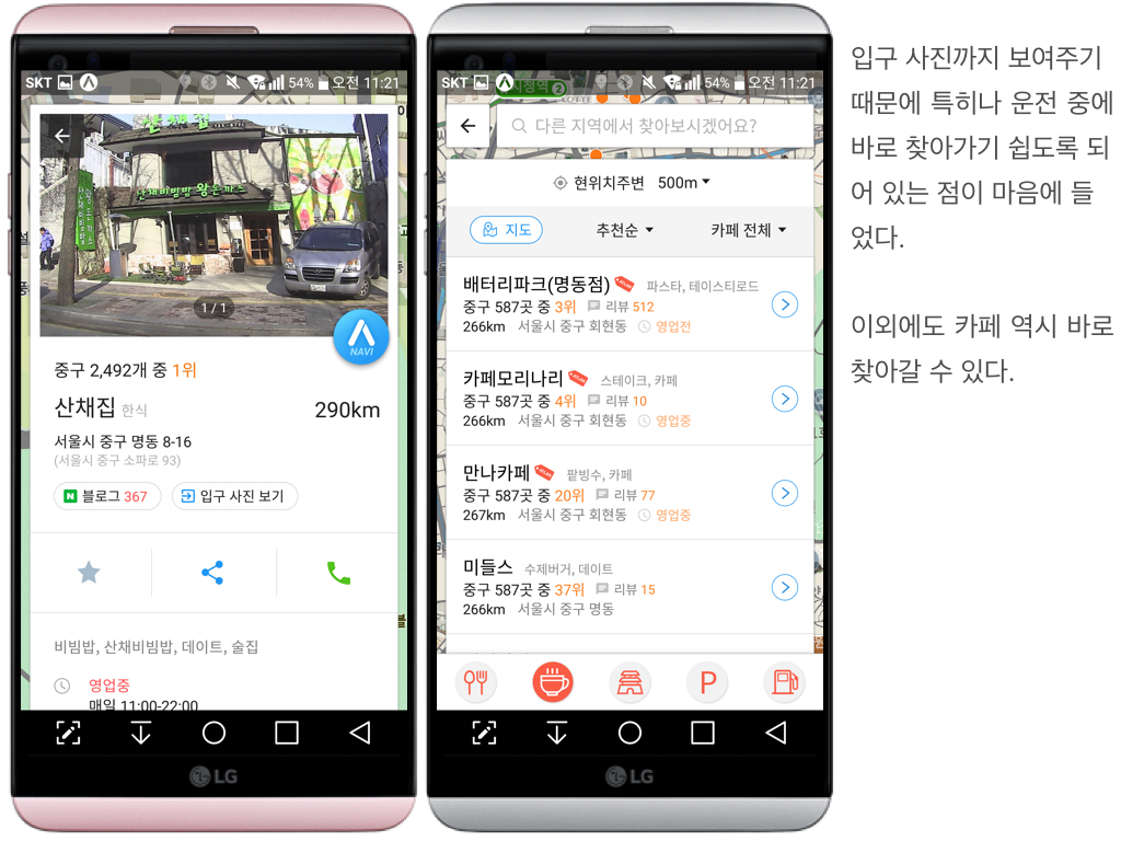 그리고 아틀란 LIVE를 활용하면 다양한 영업시간을 비롯해서 바로 메뉴를 확인하거나, 주차장에 대한 상세 정보들, 주유소의 세차 서비스 여부나 경정비 서비스까지도 모두 한눈에 볼 수 있기 때문에 검색으로 인한 수고가 줄어드는 편리함은 상당히 매력적인 부분이기도 했다.