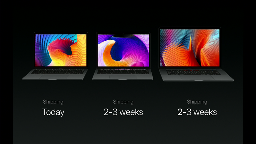 마지막으로 15인치 모델은 14% 더 얇아진 15.5mm의 두께에 20% 더 가벼워진 1.84kg의 무게를 지니고 있으며 i7 쿼드코어 2.6GHz를 기본으로 16기가 램과 라데온 PRO 450 그래픽 카드를 기본으로, 256기가 플래시 드라이브를 지원한다.