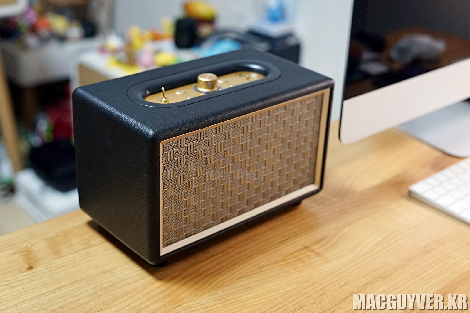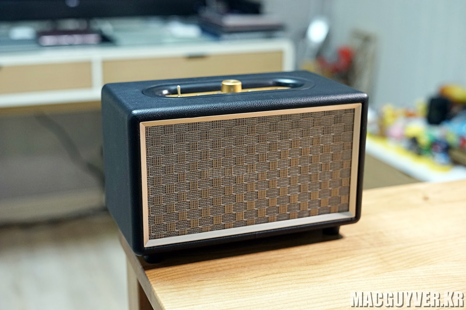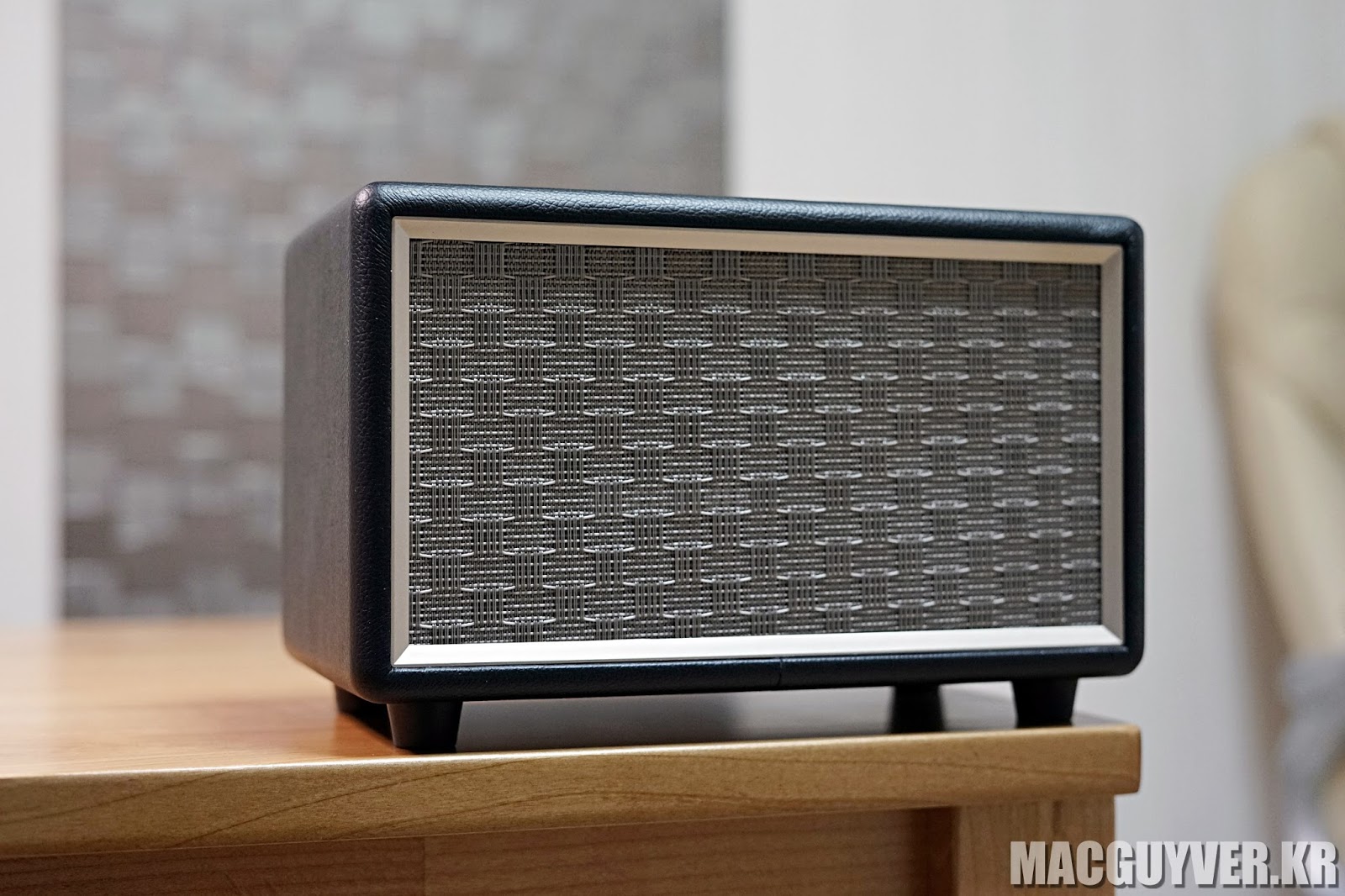 디자인에 대해서도 할 말은 많다. 우선은 일반적인 플라스틱으로 보이는 마감이 아닌 가죽 느낌의 마감과 세밀한 스피커 천의 디자인과 재질은 이 제품의 고급스러움을 더해줬고 상단부에 위치한 아날로그의 향수가 느껴지는 디자인도 매우 마음에 들었다.