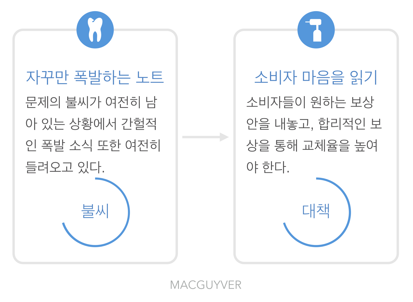 우선, 삼성은 소비자들이 왜 교체를 하지 않는지 근본 원인을 찾아서 그 가려움을 해소할 필요가 있다. 누가 보더라도 보상안이라 할 수 없는 보상안을 내놓은 결과 소비자들이 움직이지 않음을 삼성 역시 알고 있기 때문이다.