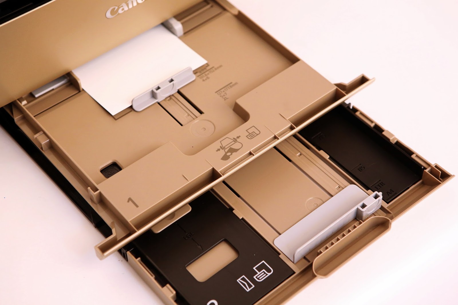 마미포토는 카세트가 위쪽과 아래에 2개가 들어가는데, 포토용지와 일반용지를 동시에 급지해 놓고 사용이 가능하도록 만들어졌다. 그리고 용지의 사이즈를 좌우와 윗쪽 가이드로 조정이 가능하기 때문에 A4 용지 이하의 사이즈라면 원하는 규격으로 모두 사용이 가능하다.