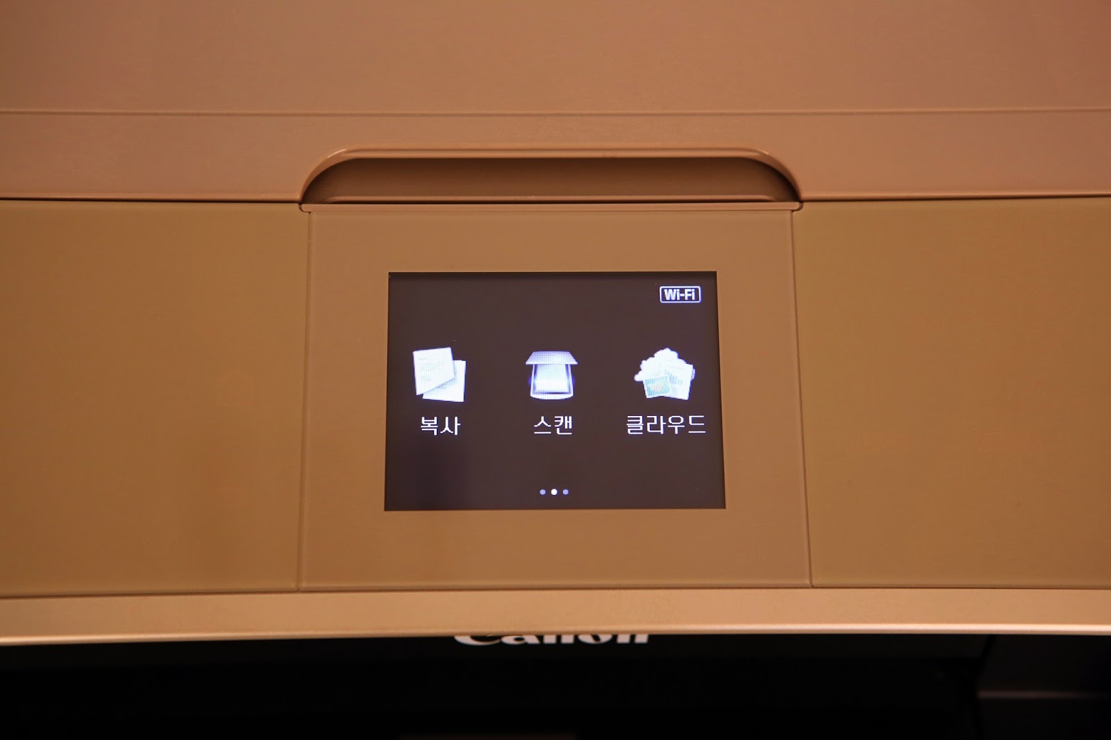 위쪽 사진에서는 없었던 다른 조작 버튼이 아래 사진에는 나와 있는 것을 확인할 수 있다. MG7790 모델은 포토프린터이면서 동시에 복합기이지만 외관을 심플하고 고급스럽게 하기 위해 많은 노력을 기울인 흔적이 엿보이는 부분이다.