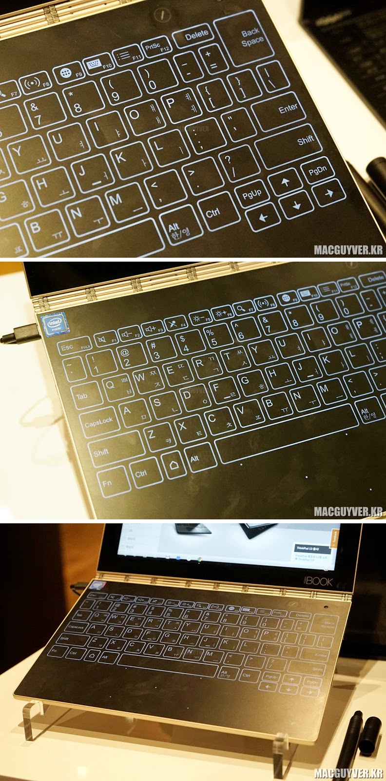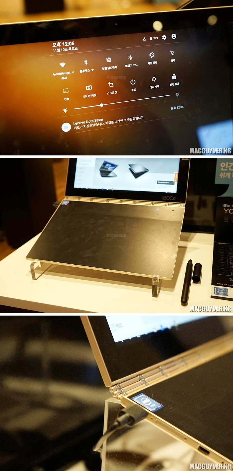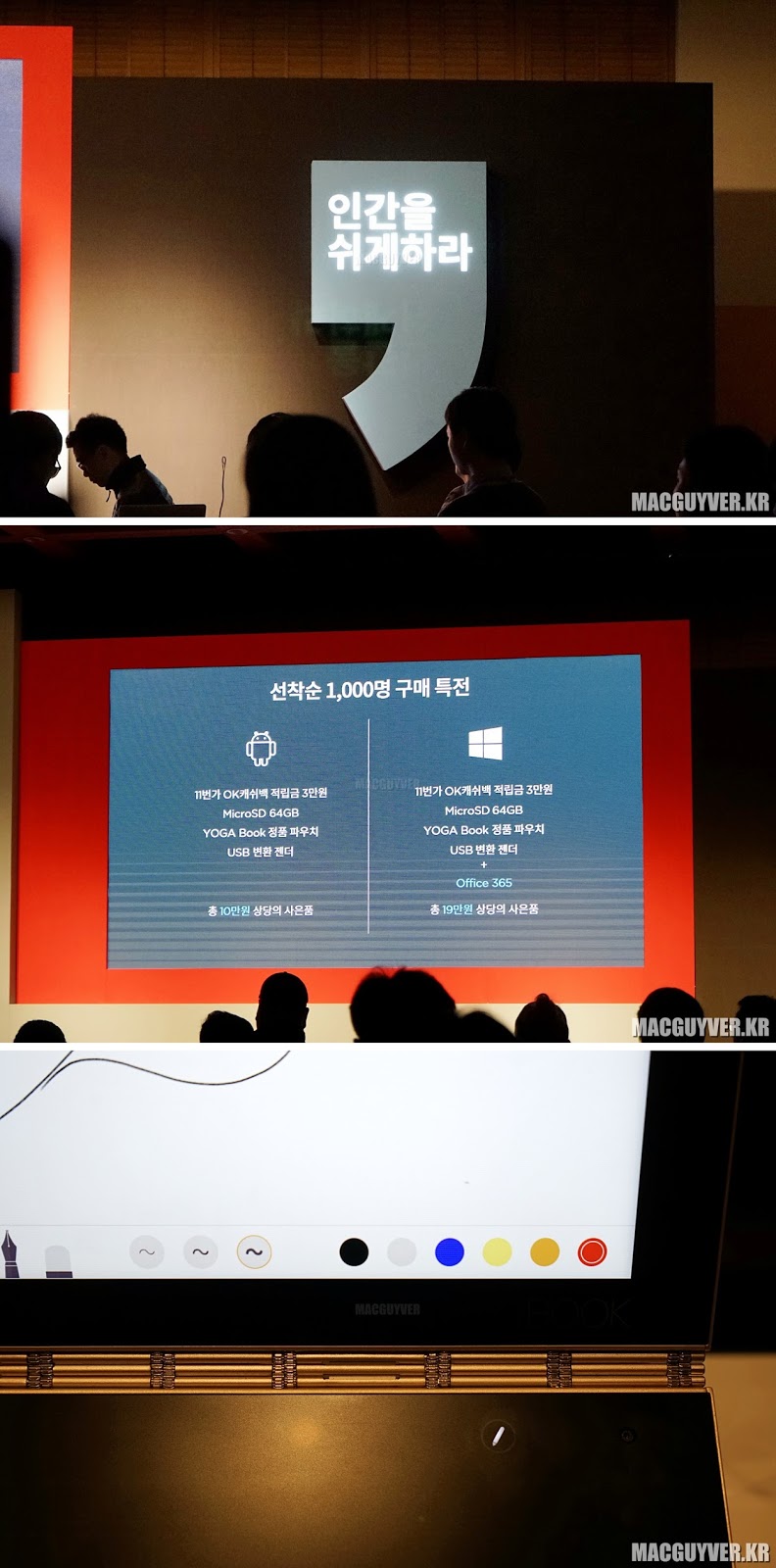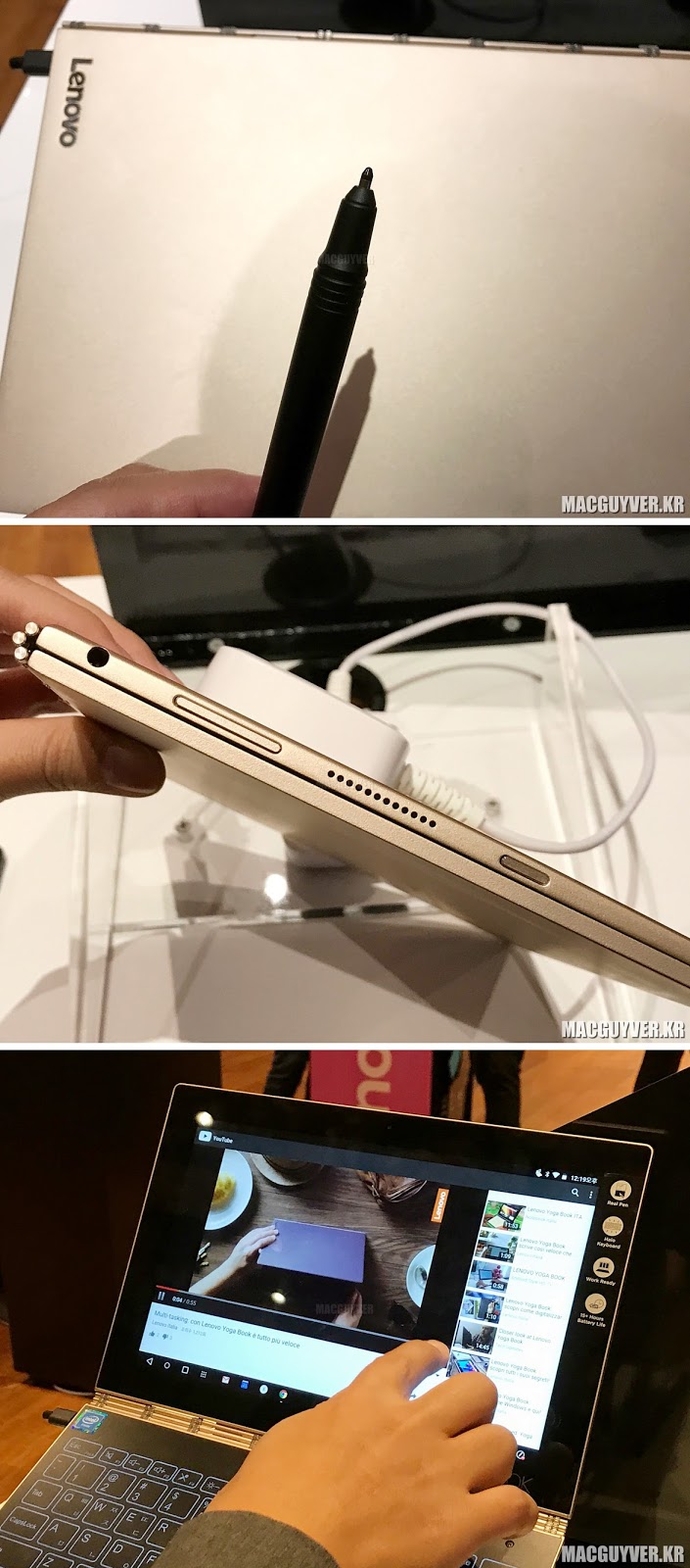 매우 가볍다는 점에서, 매우 얇다는 점에서, 노트북이기도 하고 또 태블릿이 되기도 하면서 동시에 100% 아날로그적인 입력도 가능한 신개념 노트북인 요가북의 실제 쓰임새는 어떠한지 이어지는 개봉기와 사용기를 기대해볼 것을 추천한다. - MACGUYVER.