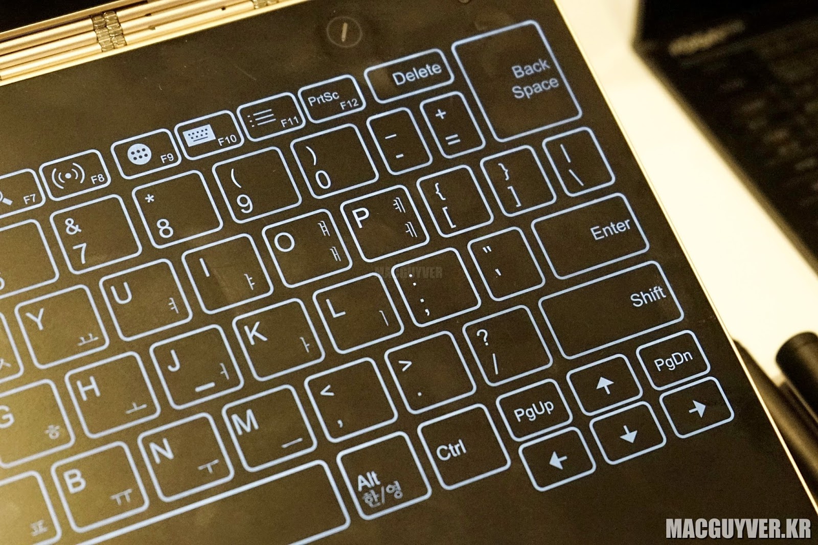 그리고 레노버는 이러한 3가지 영역을 100% 지켜내기 위해 기존과는 완전히 다른 방식으로의 접근을 시도했다. 키보드를 터치로 만들어 버렸고, 터치펜의 인식을 키보드 위에서 할 수 있도록 했으며, 실제 종이 위에 메모한 것이 그대로 그려지도록 만든 것이다.