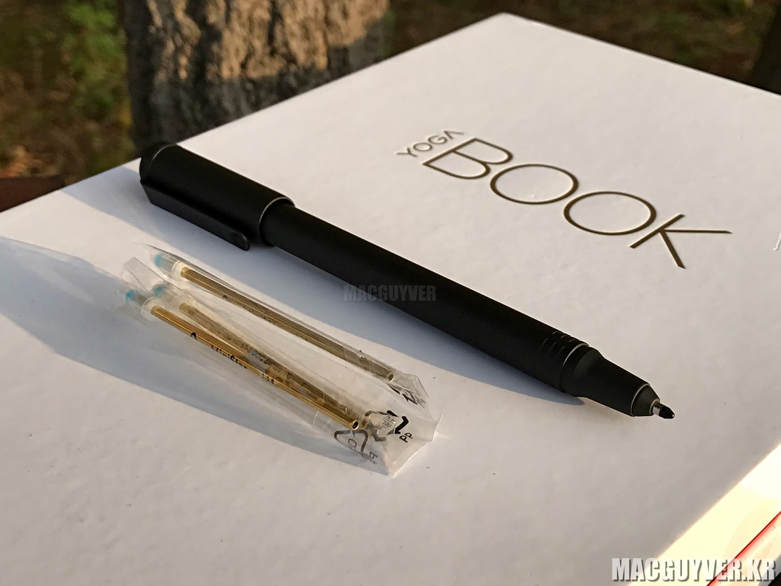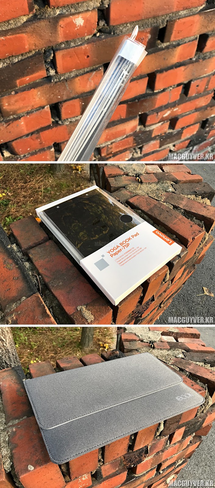 ✎ 보호 필름을 벗겨내면 더욱 심플해지는 요가북과 별도의 젠더 및 추가로 구매한 용지