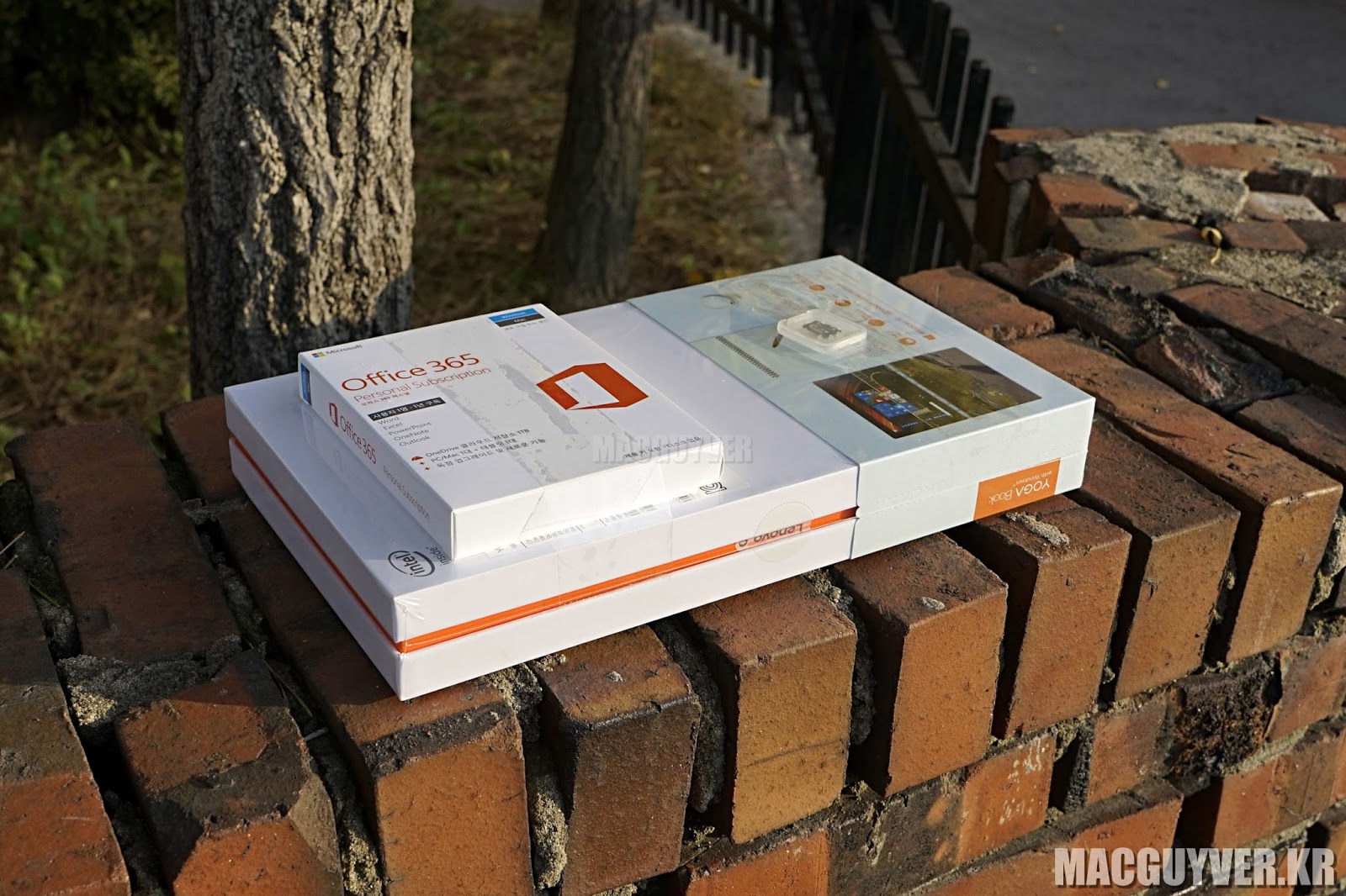 ✎ 기다란 박스에 담겨 있던 요가북, 오피스 365 1년 구독권과 64기가 외장 메모리가 사은품으로 제공되었다.